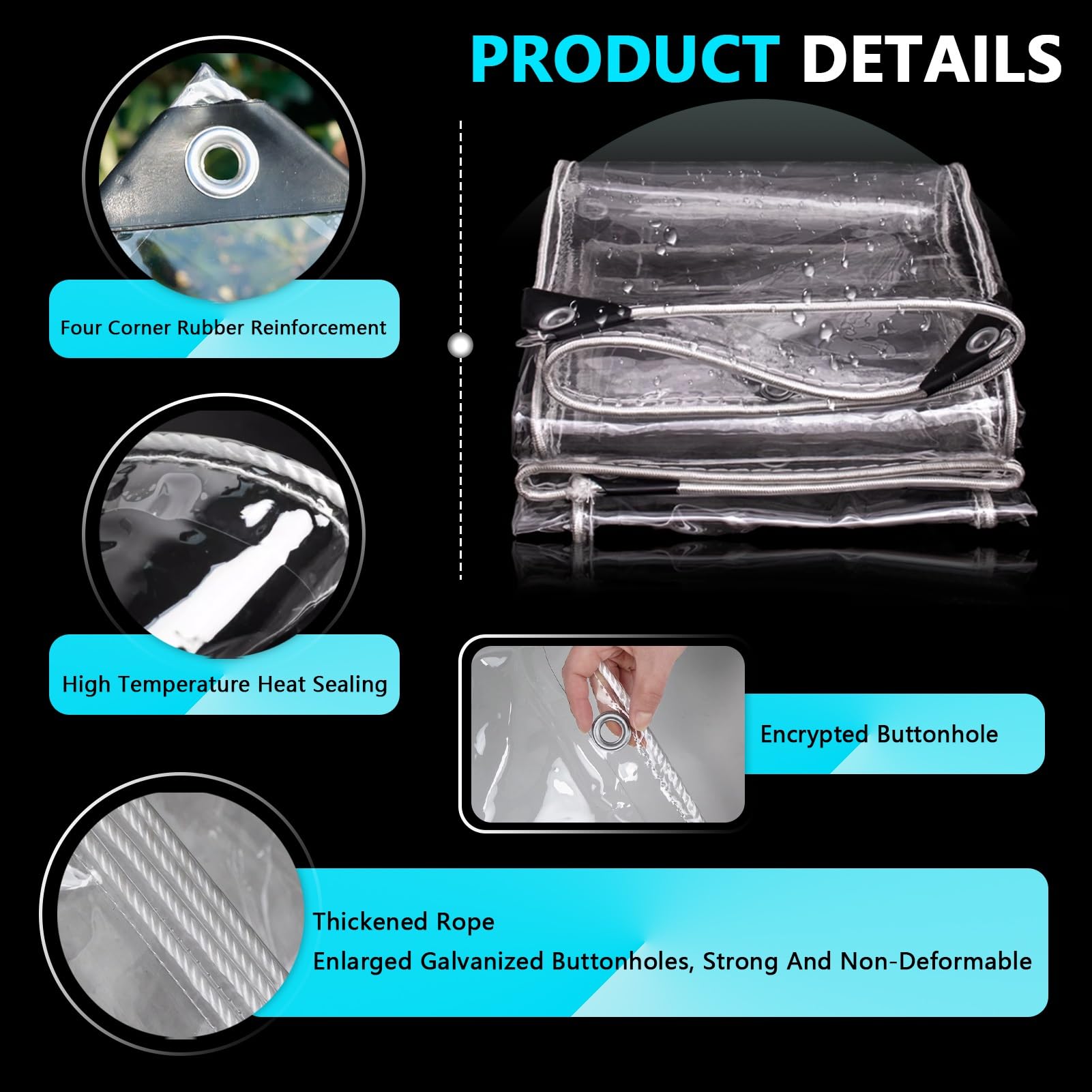 Bâche Imperméable Robuste 1 X 1.5m, 1.2 X 1.5m, 2 X 3m, 3 X 4m, 4 X 6m Bâche Transparente En Plastique Avec œillets, Feuille De Bâche Transparente En