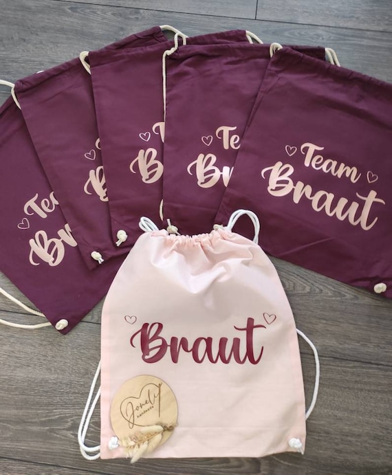 Team Bride, Enterrement De Vie De Jeune Fille JGA' Sac à Dos Il suffit de tout mettre dans notre magnifique sac à dos avec le motif BRAUT. Les accessoires de maquillage, les outils de couture et autres accessoires doivent également être emballés de manière élégante. Les accessoires de maquillage, les outils de couture et d'autres accessoires doivent également être emballés de manière élégante. Le sac de sport est fabriqué en coton blanc et l'impression brille dans un or rose élégant Si votre fille se déplace pour aller JGA, vous avez bien sûr besoin de la poche adaptée pour tous vos ustensiles. Que ce soit un portefeuille, un téléphone portable, un écharpe, des bonbons ou du prosecco. Les accessoires de maquillage, les outils de couture et... + 3 stickers Let's Party de My Weddingshop Sac personnalisé pour soutenance disponible Super accessoire pour votre enterrement de vie de jeune fille ou enterrement de vie de jeune fille Conseils d'entretien : lavable en machine à 40 °C - Passe au sèche-linge - L'impression ne doit pas être repassée Le sac de sport est fabriqué en coton blanc et l'impression brille dans un or élégant. Trouvez des sacs et sacs à dos anniversaire de mariage à votre goût. Tout le monde doit savoir que c'est votre soirée aujourd'hui.