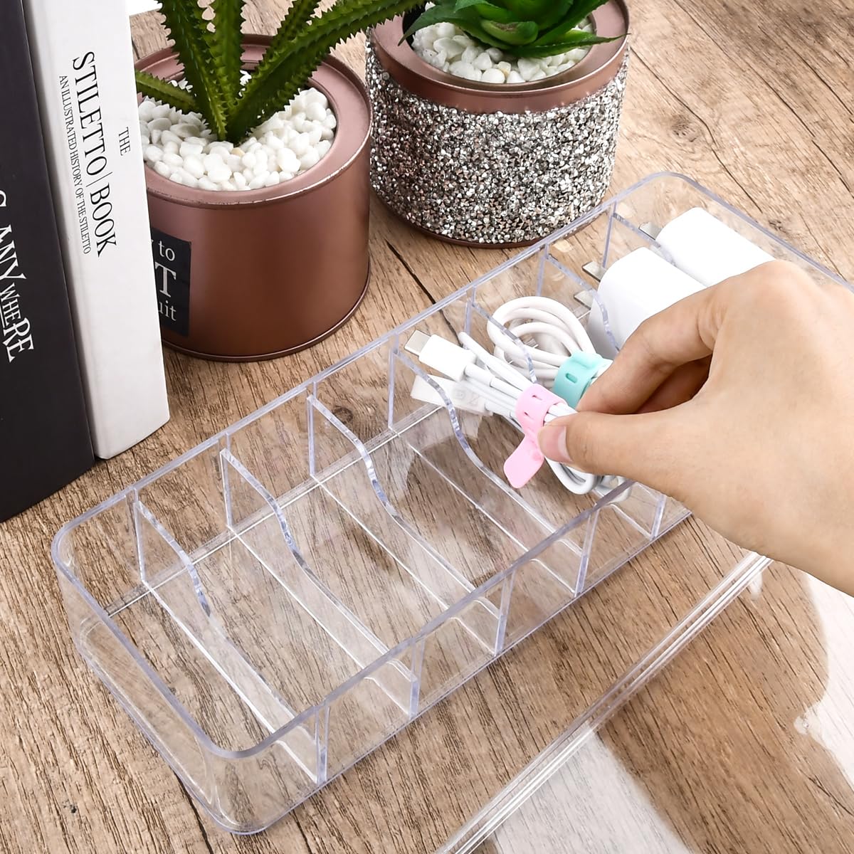 L'attache-câble assortie comporte 4 trous et 6 couleurs différentes pour une fixation facile des câbles de charge. Le couvercle amovible empêche non seulement efficacement la poussière de pénétrer, mais dispose également d'un serre-câble qui facilite la fixation du câble de charge. La boîte de rangement pour chargeur est fabriquée en plastique de haute qualité, transparent, robuste, résistant, étanche à l'eau et à la poussière, vous permettant de voir les câbles clairement et facilement La conception transparente haute résolution de boîte d'organisateur de câbles signifie que vous n'avez plus besoin de passer du temps à chercher et à trier et que vous pouvez facilement trouver ce dont vous avez besoin. Spécification Nom du produit : boîte rangement câble données avec couvercle Matériau : plastique PS + silicone Boîte de rangement transparente : 27,3 x 9,6 x 6 cm, compartiment : 9,1 x 5 x 3,4 cm Attache-câble en silicone coloré : 1,3 x 7,8 cm, 4 trous sur l'attache-câble (6 couleurs, 4 pièces de chaque couleur). Boîte de rangement de câbles 2 pièces Boîte de câbles transparent en plastique rangement chargeur Matériaux durables et design transparent - Boîte de rangement pour câble transparent Boîte de rangement de câble transparente est fabriqué en plastique de haute qualité et le corps de la boîte est épaissi pour le rendre plus durable. Rangement câble et chargeur peut être facilement placé dans divers espaces tels que des bureaux, des commodes et des coiffeuses. Les dimensions de ce boîte de rangement pour câbles transparent sont de 27,3 x 9,6 x 6 cm. Rangement câble et chargeur peut être facilement placé dans divers espaces tels que des bureaux, des commodes et des coiffeuses.,[Utilisations multifonctionnelles] - Boite rangement cable plastique convient non seulement au stockage des câbles de charge, des câbles d'écouteurs et des cordons d'alimentation, mais est également idéal... 【Utilisations multifonctionnelles】 - Boite rangement cable plastique convient non seulement au stockage des câbles de charge, des câbles d'écouteurs et des cordons d'alimentation, mais est également idéal pour stocker de petits objets tels que des cartes de visite, des notes autocollantes, du dentifrice, des peignes, des médicaments, de la vaisselle, des sachets de thé, des fournitures de bureau., , etc. Range Cable USENG 2 Pièces Boîte De Rangement Pour Câbles Avec Couvercle Cable Management 【Ensemble de 2 transparent boîte de rangement cable】 - Chaque paquet contient 2 pièces boite de rangement pour cable et 24 attaches zippées colorées en silicone. Que ce soit pour les parents, amis, voisins, enseignants ou professionnels, c'est un bon cadeau. 【Conception de séparation amovible et conception anti-poussière】 - Les compartiments de ce boîtes de rangement pour câbles sont tous amovibles et chaque rangement chargeur et cable dispose d'un total de 7 séparateurs, permettant aux utilisateurs d'ajuster librement la taille et l'espace en fonction de leurs besoins personnels. Contenu de la livraison 2X Boite rangement cable et chargeur 24X Attaches-câbles en silicone 1 ensemble de boîte de rangement de câbles et d'attaches de câbles