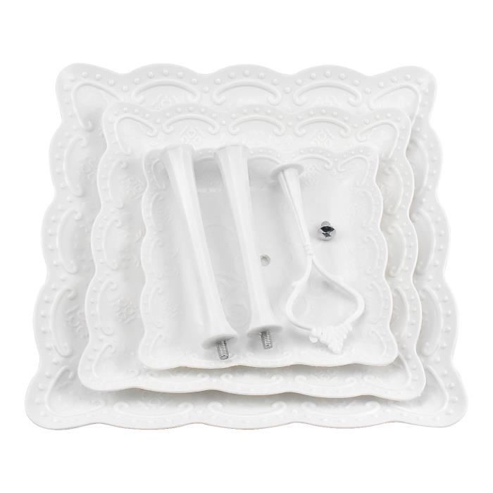 Matériau de qualité alimentaire : plateaux en céramique de haute qualité, sûrs et sains. Dimensions : hauteur totale : 36,8 cm. Forme carrée blanche pure simple et élégante, donnant aux invités un plaisir visuel. Fabrication exquise : plateau de service à motifs en relief élégants, habilement connecté avec une tige en métal solide, plein de sens artistique, parfait pour présenter des cupcakes, des apéritifs, des desserts, des macarons, des fruits, des collations et plus encore En plastique blanc solide, il a 3 niveaux de diamètres différents (14, 19, et 24 cm) pour une hauteur totale de 37cm. L'assemblage est facile sans outils, juste... Sumerflos Support à Cupcakes En Porcelaine à 3 Niveaux La céramique naturelle est durable et confortable. ACTUEL Support à gâteau 2 niveaux porcelaine 27/20cm - Ivoire pas cher Simple à assembler et à démonter, le design à plusieurs niveaux du serveur permet d'économiser de l'espace. Fabrication exquise : plateau de service à motifs en relief élégants, habilement connecté avec une tige en métal solide, plein de sens artistique, parfait pour présenter des cupcakes, des apéritifs, des desserts, des macarons, des fruits, des collations et plus encore. Un anneau de levage en forme de fleur sur le dessus du support est facile à transporter et à déplacer.