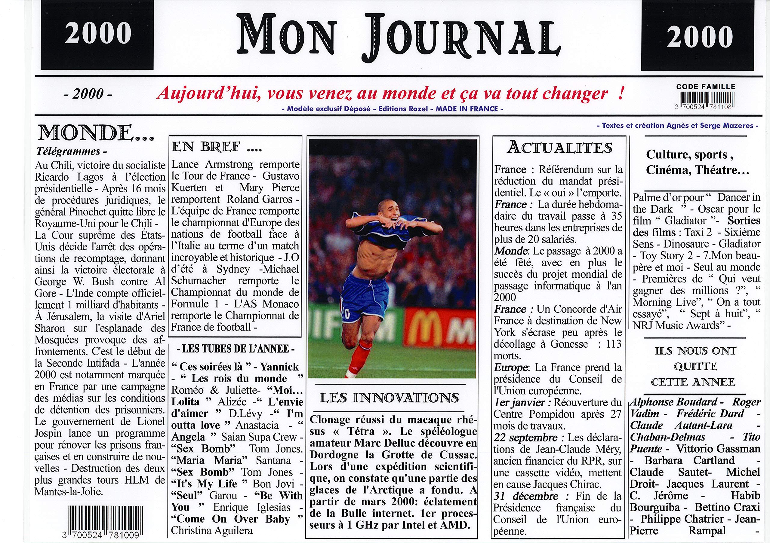 Avec ce set de table personnalisé : Surprenez vos invités ! Set de table plastifié au format 30,5 x 43 cm. Générique Set de Table année 2000 - on Journal - plastifié - Année de... Set De Table 2000 Générique Set De Table Année 2000 - Mon Journal - Plastifié Années 2000 Set De Table Anniversaire Gu00e9nu00e9rique Set De Table Annu00e9e LES FAITS MARQUANTS, LES TUBES, LES PERSONNALITÉS NÉES CETTE ANNÉE LÀ, CELLES QUI NOUS ONT QUITTÉES, LES SPORTS, LE CINÉMA., ., ., Article original à s'offrir ou à offrir à vos proches.