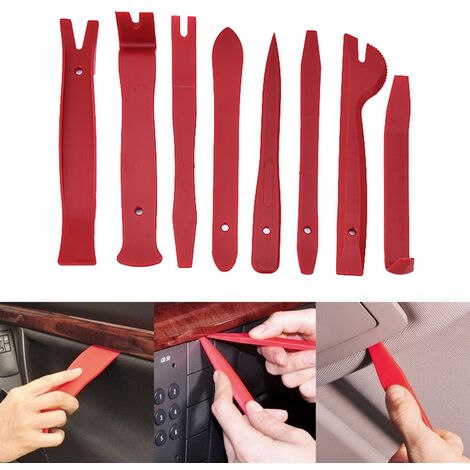 Livré avec dessus fendus pour libérer les fixations du clip de garniture Permet de démonter la plupart des panneaux de porte étrangers et domestiques Ensemble d'outils de démontage de garniture Pour une grande variété de besoins, y compris les magasins stéréo et les installateurs Supprime les garnitures intérieures de l'intérieur des portes de voiture Livré avec des fentes sur le dessus pour libérer les fixations à clip Retours gratuits et faciles Vous... Outils de Clip de Panneau - OMABETA - T10383 - 3x Bascule - 3x Crochet Automotive door panel service kit allows you to disassemble most foreign and domestic door panels Amazon Lucywey 100 Pièces Kit Plastique Voiture Clip Garniture Porte Fixation Removal Tool La conception de la mâchoire permet de retirer légèrement le clip en pressant les poignées Le nez large est conçu pour éviter de casser ou de déchirer les panneaux avec des faces défaites Outil professionnel pour un usage occasionnel ou commerciaux outil de dégarnissage set adapté à une grande variété de besoins y compris les magasins et les installateurs stéréo / teinte de fenêtre / Magasins / mécanique automobile auto body shops panneau de porte automobile service kit vous permet de démonter la plupart des panneaux de porte intérieure et étrangère élimine facilement les panneaux de garniture garniture intérieure de l'intérieur de portes de voiture est dotée de fentes pour libérer la garniture de tops fermeture Grands coussins couleur double poignées pour une meilleure prise en main et le confort pendant l'utilisation fabriqués en acier au chrome-vanadium avec traitement thermique et construction finition poudre ensuite pour la rouille et la résistance à la corrosion Set 2 outils et une droite remover outil pliées en fonction de ce que l'accès Est disponible trou dans les poignées pour le stockage (pour être raccroché) si l'espace est limité SET COMPREND LES 1 x filtre rectangulaire outil clip - longueur totale 215mm 1 x filtre en coin triangulaire clip - longueur totale 215mm 1 x 80 degrés en coin triangulaire clip - longueur totale 225mm / largeur totale 110mm (pour accès difficile ou limitée) jeu d'outils de suppression garniture