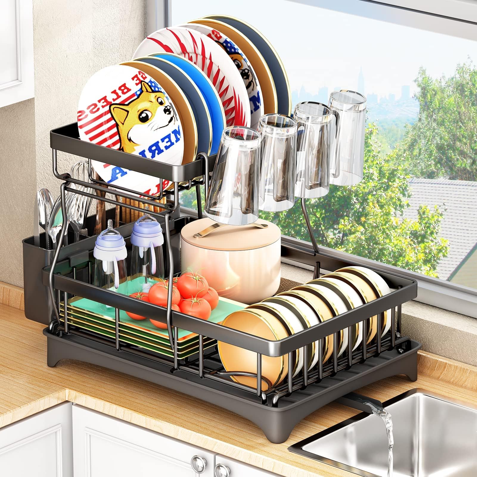 Design à 2 niveaux de grande capacité : cet égouttoir pour comptoir de cuisine dispose d'un design amovible à 2 niveaux, pouvant facilement accueillir divers éléments essentiels de cuisine. Principaux points forts · Matériau. Métal · Dimensions du produit. 41,9P x 30,2l x 32,4H centimètres · Marque. StowBin · Couleur. Noir · Usages recommandés pour le... Installation facile : aucun outil ou vis n'est nécessaire pour le montage. Egoutoire Vaisselle Cuisine StowBin Égouttoir à Vaisselle à 2 Niveaux Pour Comptoir De Cuisine – Égouttoir à Vaisselle Peu Encombrant Avec Porte-ustensiles Rangement Vaisselle Evier Solution de rangement polyvalente : cet égouttoir à vaisselle multifonction peut non seulement contenir vos plats et ustensiles, mais comprend également un porte-couverts latéral et un porte-gobelet, offrant une solution de rangement complète pour vos ustensiles de cuisine. Suivez simplement les instructions dans le manuel d'installation pour assembler l'égouttoir à vaisselle avec facilité. Solution de rangement polyvalente : cet égouttoir à vaisselle multifonction peut non seulement contenir vos plats et ustensiles, mais comprend également un porte-couverts latéral et un porte-gobelet, offrant une solution... Egoutoire Vaisselle Cuisine, 2 Étages Egouttoir Vaisselle avec Égouttoir Et Support pour Couverts, Antirouille - Noir - Maison Suivez simplement les instructions dans le manuel d'installation pour assembler l'égouttoir à vaisselle avec facilité. Il est livré avec un porte-ustensiles et un porte-gobelets, ce qui le rend adapté pour ranger des assiettes, des bols, des tasses et même des casseroles et poêles.