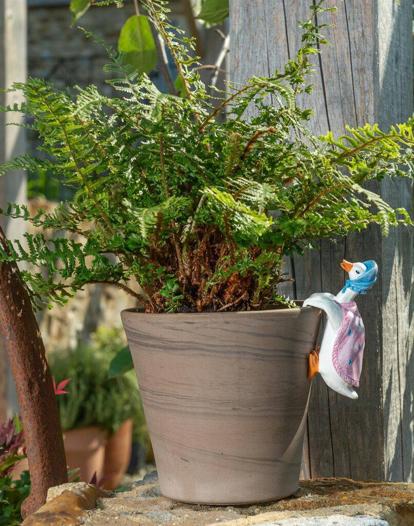 Ils sont également enfermés en toute sécurité dans une couche de protection en mousse (également fabriqué à partir de matériaux 100 % recyclés), ce qui garantit que les ruptures sont très peu probables. Ils contiennent un insert en silicone en forme de cône spécialement conçu pour s'assurer qu'ils s'adaptent à la plupart des tailles de cannes ou de piquets (de petites orchidées intérieures aux grandes cannes de bambou extérieures) et aident le compagnon de canne à rester en place par temps très venteux. Cane Companions Piquet Pierre Lapin Beatrix Potter – Fait à Ils aident également à empêcher les vêtements de s'accrocher sur des cannes ou des piquets pendant le jardinage. Chaque compagnon de canne est fabriqué à la main à partir d'un matériau unique et durable à base de polyrésine et de pierre concassée, assurant qu'ils sont résistants au gel (et peuvent être laissés à l'extérieur toute l'année). Nos emballages peuvent également être recyclés après utilisation., Fait main. Collection Beatrix Potter. Joli, décoratif et fonctionnel. En travaillant en étroite collaboration avec les livres Penguin Random House Books, Jardinopia a créé 10 designs, finis dans leurs versions traditionnelles en bronze antique et en couleurs qui capturent les caractéristiques uniques de chaque personnage des contes très appréciées de Beatrix Potter., Joliment emballé. Le M. Jeremy Fisher Cane Companion transcende la simple décoration, offrant des avantages pratiques pour améliorer votre expérience de jardinage. Conçu pour s'adapter en toute sécurité sur des cannes ou des piquets de bambou, il protège vos yeux et vos vêtements pendant que vous jardinez Fabriqué à partir d'une polyrésine durable et d'un matériau à base de pierre écrasée Beatrix Potter Wikipedia Beatrix Potter, M. Jeremy Fisher, Compagnon De Canne Beatrix Potter Dernier Livre Utilisation en extérieur et en intérieur tout au long de l'année. Notre gamme de 10 cannes Beatrix Potter en couleurs a été conçue et fabriquée par Jardinopia, en travaillant à partir des images originales, et en conjonction avec les livres Penguin Random House Books. Tous nos accessoires de canne sont conçus pour protéger vos yeux pendant le jardinage, et se posent fermement sur vos tiges de bambou ou piquets. Conçu pour s'adapter à la plupart des tailles de piquets ou de cannes. Résistant au gel et aux UVA et peint à la main en utilisant des produits sans plomb , Joli coffret cadeau