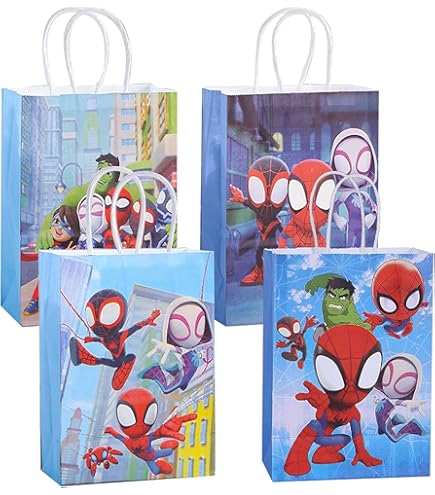 Spécification: Couleur: colorée Matériel: PE Taille du produit: 25x16,5cm Détails du package: 50 x sacs cadeaux motif araignée Note: En raison de la mesure manuelle, la taille et le poids peuvent avoir une certaine erreur. Parfait pour tenir des bonbons, des biscuits, de petits jouets ou d'autres faveurs de fête. Design accrocheur: ces sacs de cadeaux de fête sont soigneusement conçus avec des couleurs rouge et bleu vibrantes. 6 Sacs à cadeaux Spiderman™ - Vegaooparty Indispensable pour la fête : notre ensemble de sacs cadeaux araignées a une capacité suffisante, est léger et portable et peut être utilisé pour contenir des bonbons, des biscuits, des collations, des petits jouets, des petits cadeaux, etc. C'est un excellent cadeau pour les fêtes d'anniversaire et peut également être utilisé comme... Sac Spiderman Yomaiha Sac Cadeau D'anniversaire En Forme D'araignée Avec Poignées En Papier De Soie Et Carton Rouge Et Noir, Décorations De Fête Pour Garçons Et Hommes, Fournitures De Noël Sac Bonbon Le forfait comprend: vous recevrez 50 morceaux de sacs de faveur de fête sur le thème des araignées, vous assurer que vous avez beaucoup à partager avec les invités, remplir de friandises et créer une expérience de fête mémorable. SAVITA Lot de 50 sacs à friandises en polyéthylène avec Matériel durable: en matériau PE de bonne qualité, ces sacs de bonbons sont robustes et fiables avec des couleurs vives qui ne se fanent pas facilement. Les deux parties présentent un mélange d'araignée frappante, d'illustrations de Webs d'araignée et de paysage urbain dynamique, ce qui en fait un ajout fantastique pour améliorer votre atmosphère de fête. Utilisation polyvalente: Idéal pour les fêtes d'anniversaire des enfants, les événements de dessin animé ou sur le thème des araignées ou les célébrations sur le thème des dessins animés.