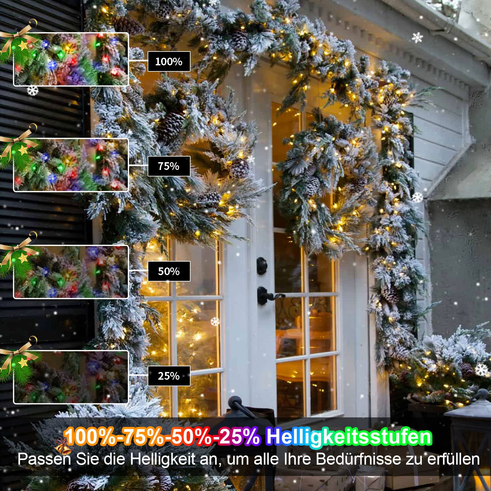 Blanc chaud et changement de couleur multicolore : livré avec 3 modes de couleur, vous pouvez définir multicolore uniquement, blanc chaud uniquement ou combinaison de blanc chaud et multicolore pour différentes fêtes ou occasions. Les lumières de Noël à piles rendent la décoration extérieure sans effort et pratique Guirlande lumineuse de Noël : guirlande de 100 LED blanc chaud le... Accrochez la guirlande lumineuse de Noël le long du toit ou du porche, enveloppez-les autour des arbres et créez votre décoration de Noël la plus enchanteresse jamais vue Vous pouvez facilement les mettre ou les accrocher sur les arbres de Noël, les fenêtres, les portes, les clôtures, etc Multicolore Les guirlandes lumineuses RVB pourraient créer une atmosphère de Noël pour vous ! Guirlande lumineuse LED de Noël : Cette guirlande de 10 mètres, composée de 100 LED, illumine votre sapin de Noël sous tous les angles. Son fil vert foncé de haute qualité est robuste, durable et flexible, garantissant un éclairage durable. Le câble d'alimentation extra-long est idéal pour décorer une table de chevet, une tente, un sapin de Noël, ou encore pour placer des LED dans... Lorsque notre guirlande lumineuse de Noël est nichée parmi les plantes vertes, elle est presque invisible, comme les arbres de Noël, les couronnes de Noël, les buissons, etc. Lumières de Noël féeriques avec télécommande sans fil Minuterie (6 heures allumées, 18 heures éteintes) et changement de couleur, séquences lumineuses. Guirlandes lumineuses d'extérieur à piles Guirlande lumineuse à LED avec fonction de minuterie Fil vert foncé La conception de fil vert foncé aide à camoufler les fils. Large application : la guirlande lumineuse à piles est parfaite pour ajouter une touche festive à votre sapin de Noël, vacances, mariage, fête et autres occasions festives. Avec une longueur totale de 10 m et une distance de 10,2 cm entre les LED, les lumières de sapin de Noël offrent la quantité parfaite de chaleur et de luminosité. Pour une utilisation en intérieur et en extérieur Décorations de Noël Guirlandes lumineuses à piles Emballage inclus: 1 guirlande lumineuse 10 m 100 LED., 1 télécommande Guirlande Led 10m KOUQIYA Guirlande Lumineuse De Noël à Piles, 10,1 M, 100 DEL, Avec Minuteur, 8 Modes, étanche, Pour Noël, Extérieur, Intérieur, Jardin, Fête, Décoration Multicolore Guirlande Lumineuse Sapin 10m Câble vert foncé : le câble vert foncé est le choix parfait pour afficher des lumières sur un sapin de Noël ou d'autres toiles de fond naturelles. Blanc chaud Guirlande lumineuse 100 LED blanc chaud Les fils vert foncé, source d'éclairage généralisée, créent une atmosphère romantique pour vous. 8 modes d'éclairage: 1., Combinaison , 2., En Vague , 3., Scintillement/Flash , 4., Slo Glo , 5., Blanc chaud , 6., Multicolore , 7., Séquentiel , 8., Continuez Télécommande : avec une télécommande pratique, vous pouvez régler une minuterie pour 6 heures allumée et 18 heures éteinte, basculer entre les couleurs et 8 modes d'éclairage, 10 niveaux de luminosité réglables, illuminer les lumières selon vos préférences Noël Lumineuse Exterieur Multicolore, 10M 100 LED Guirlande Lumineuse Electrique Interieur Etanche Lumieres Avec 8 Modes Memoire Pour Decoration Noel 99144605 ) Vous pouvez changer le mode d'éclairage grâce aux boutons de la télécommande ou du boîtier de la batterie. Le fil de plomb de 30 cm permet une installation facile et flexible