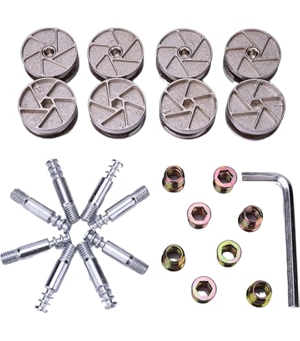 1 lot de verrous de roue robustes pour cadre de lit comprenant 4 verrous de roue à came, 4 vis de verrouillage, 4 écrous, 1 clé Allen Veuillez vous référer à la description du produit pour les numéros de modèle détaillés. 114670 X8 - Écrou de roue de rechange IKEA Metal Cam ROULETTES ROBUSTES POUR Chariot Roue De Remplacement Pivotante Rechange... Large compatibilité : parfaitement adapté à une gamme de modèles Ikea, y compris MALM, BRIMNES, SONGESAND, BJORKSNAS, TYSSEDAL et FLEKKE, entre autres. Verrous De Roue De Rechange Robustes Compatibles Avec IKEA 114670 Comme Ajustement précis : avec un diamètre de 35 mm, ces cames en spirale sont distinctes des cames plus petites de 25 mm utilisées sur certains meubles. L'installation est un jeu d'enfant avec la clé Allen incluse, éliminant ainsi le besoin d'outils supplémentaires. Assurez-vous de vérifier les dimensions sur votre cadre de lit avant d'acheter. Qqmora Jeu de verrous de roue Ensemble de 5 cadenas de roue en métal...