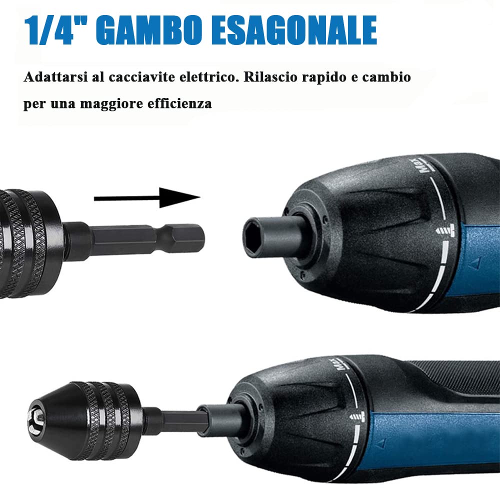 En raison de la différence entre les différents moniteurs, l'image peut ne pas refléter la couleur réelle de l'article. Pour convertir instantanément un tournevis d'impact en une perceuse de changement non rapide de forage et de pilote. Tige hexagonale 3,1/4 convient pour la plupart des outils électriques tels que perceuse électrique, meuleuse, tournevis , 4., Ce mandrin adopte un design sans clé qui est pratique pour la fixation ou le retrait de la foret en peu de temps., 5., Utilisez ce mandrin pour convertir n'importe quelle visseuse sans fil en perceuse ou meuleuse. S'adapte à la plupart des outils électriques : notre adaptateur hexagonal de 1/4 se verrouille facilement dans les visseuses électriques, perceuses électriques, ponceuses et plus encore Convertissez instantanément le pilote à percussion pour contenir des forets et des pilotes à changement non rapide. Facile à utiliser et à installer, pratique et sûr Mandrin auto-serrant pour visseuse avec prise 6 pans. Rotation à droite. 1 x Hex Shank Drill Chuck , 1., Pour convertir instantanément un tournevis à impact en une perceuse de changement de forage et de pilote non rapide., 2., Structure de la pince à trois griffes, force de serrage forte, stable et rapide, qui empêche efficacement la fuite des pointes de coupe, plus fiable. Le mandrin auto-serrant se serre à la main pour un changement facile de la pointe. Mandrin auto-serrant pour outil rotatif dremel Mandrin auto-serrant de type hexagonal Snappy -… - Bricolage Adaptateur Mandrin Leroy Merlin Mandrin Auto-serrant De 0,3 à 6,5 Mm - Adaptateur à Adaptateur Mandrin Extérieur 1. Pour convertir instantanément un tournevis à impact en une perceuse de changement de forage et de pilote non rapide. · 2. · Tige hexagonale 3,1/4 convient pour... Design sans clé, pratique à tenir ou à libérer un bit en peu de temps