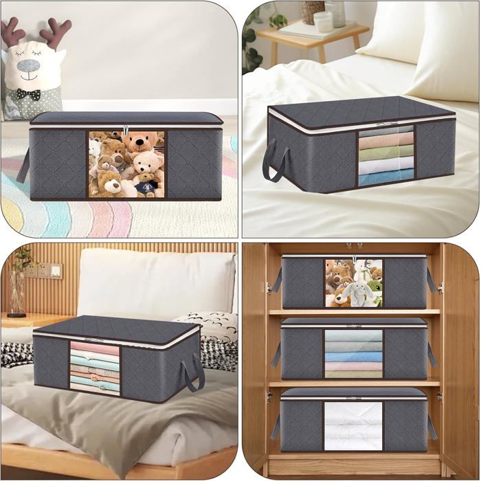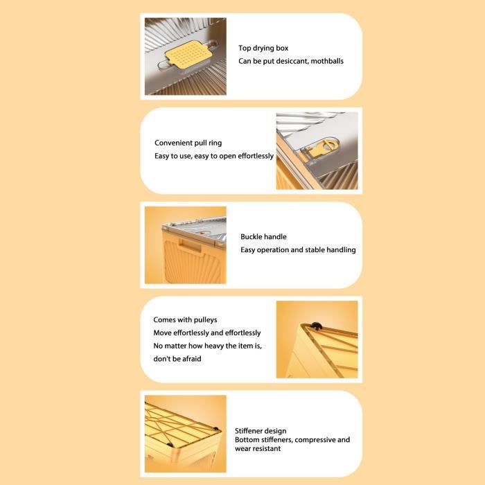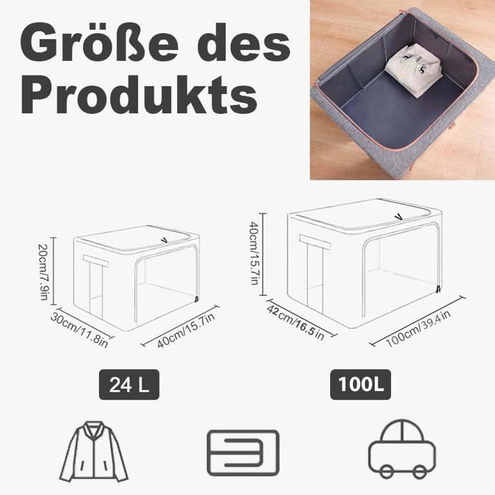 Grande capacité : chaque bac de rangement mesure 60 x 42 x 40 cm, avec une capacité de 100 L. Deux poignées sont cousues avec deux couches de tissu épais, la capacité de charge est doublée Multifonction : avec 2 fenêtres transparentes à l'avant et sur le côté pour voir le contenu en un coup d'œil. Le sac de rangement pour vêtements favorise la ventilation et protège les articles stockés de la poussière et des débris. La conception de la poignée robuste garantit que les sacs de rangement du placard sont durables et faciles à transporter Cadre en acier épais intégré, forte capacité de charge, empilé stable et non déformé. Bacs de rangement pliables empilables avec séparateurs, fenêtre Si vous... Grand Sac De Rangement Pas Cher Fermeture Eclair Metal PZJFH Lot De 3 Sacs De Rangement Avec Cadre En Métal Sac De Rangement Sous Lit Grand Sac Rangement Design empilable, facile à tenir en forme : chaque bac de rangement est doté d'un cadre en métal intégré sur les 4 côtés, ne vous inquiétez pas de savoir comment garder sa forme, vous pouvez empiler la boîte de rangement facilement pour garder votre chambre propre et bien rangée. Lot De 2 Boîtes Rangement Vêtements 100L - Gris - Pliable Résistant à l'humidité : la boîte de rangement SWEERI est fabriquée en tissu de qualité supérieure et l'intérieur est traitée avec une stratification résistante à l'humidité qui protège vos vêtements de l'humidité et de la poussière, sans vous soucier de la poussière ou de l'humidité qui gâche vos vêtements Double fermeture éclair sur le devant et le dessus pour une ouverture et une fermeture faciles, vous pouvez facilement mettre et sortir les articles. Quel que soit le problème, vous pouvez contacter notre service clientèle, nous répondrons et résoudrons toutes vos questions dans les 24 heures