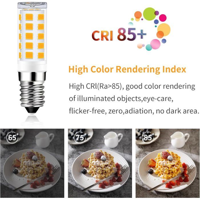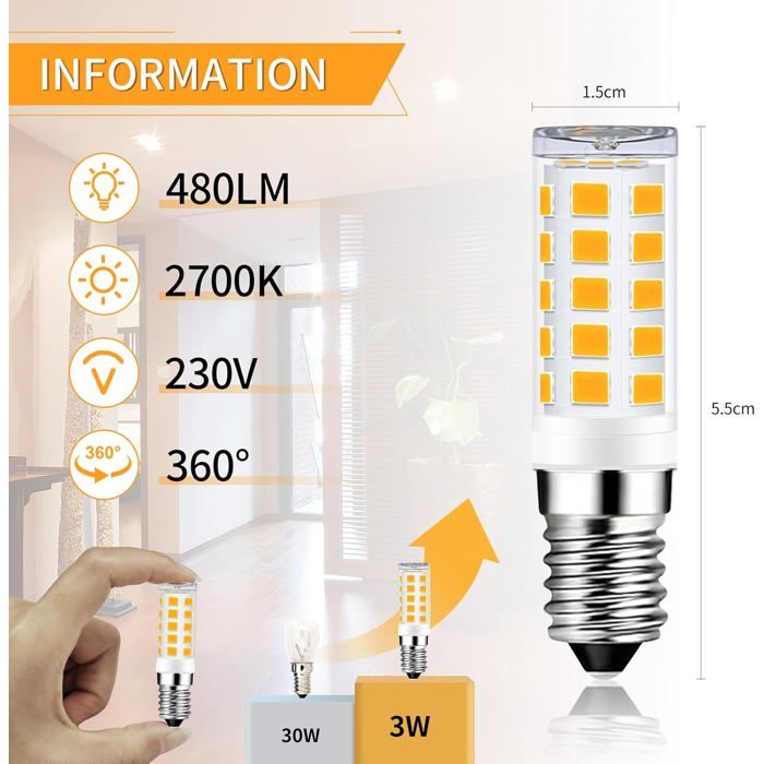 Elle est particulièrement économe en énergie par rapport aux ampoules à incandescence ou halogènes, car elles émettent une chaleur minimale, excellent remplacement qui vous permet d'économiser 90 % sur la facture d'électricité de l'éclairage. Température de couleur : 2700 K blanc chaud. DiCUNO Ampoule LED E14, 3W,équivalent halogène 40W Ampoule E14 40w Ampoule LED E14, 4 W, Blanc Chaud 2700 K, Culot E14, Non Variable, Lot Ampoule Led E14 Tube 90 % d'économie d'énergie : cette ampoule LED E14 super lumineuse de 3 W 34 LED a une luminosité de 480 lumens, ce qui correspond à une ampoule à incandescence et halogène de 28 W, 30 W, 35 W, 40 W, fonctionne avec AC 220 V, 230 V, 240 V. Pour remplacer les ampoules traditionnelles et halogènes, cette LED est directement tournée dans le culot E14., Base en céramique ignifuge et de qualité supérieure - Nos ampoules LED E14 sont équipées d'un socle en céramique ignifuge qui absorbe et dissipe mieux la chaleur que les douilles à incandescence traditionnelles, ce qui prolonge la durée de vie à 35 000 heures. La catégorie E14 est dédiée aux ampoules ayant le même culot. Remarque : intensité non variable. Largement utilisé : convient à différents types de petites lampes LED E14, telles que machine à coudre, lampe de réfrigérateur, hotte aspirante, lampe de sel de l'Himalayan, lampe à économie d'énergie, lustres, appliques murales, suspensions, plafonniers, ventilateurs de plafond, lampes de table, lampadaires, lampes sous placard, cuisine, salon, etc. Offre une lumière douce et blanche chaude sans éblouissement et est composée de 34 LED 2835SMD à énergie efficace, 2 LED supplémentaires sur le dessus de la lampe, parfaite pour un angle d'éclairage de 360°, pas de coins aveugles ou d'ombres Ampoule LED Dimmable GU5.3 12V DC/AC 6W 480lm 75° IP20 49,5mm - Blanc... Ampoule LED spot MR16 GU5.3 - Grise - 6W, 480 lm, 2700K - Lumière... Ampoule LED E14 7 W, 230 V, 2800 K — lumière chaude, faible consommation Son design de qualité supérieure assurera un éclairage parfait de votre intérieur. L'éclairage LED E14 de qualité supérieure peut éviter la fatigue oculaire, pas de rayonnement UV ou IR.