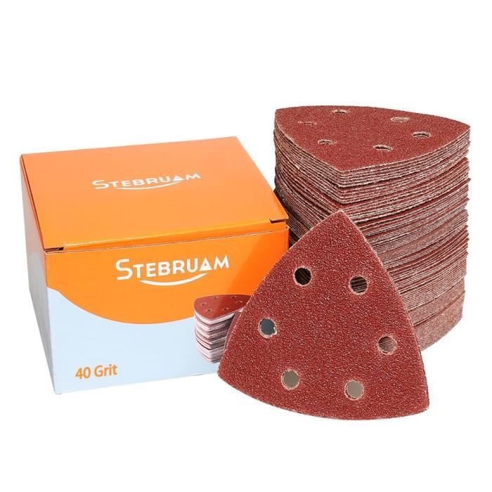 25 x 93 mm grain 120 Ponçage disques triangulaires 5 Trou conception- l'extraction de poussière sida Le disque est sauvegardé avec crochet / tissu boucle Les triangles de ponçage de 25 pièces, avec un grain de 120, mesurent 93 x 93 x 93 mm et sont conçus pour les ponceuses delta. Ces triangles abrasifs... Présentation du produit Boucle crochet disques abrasifs ponçage 93mm Pads Triangle 120 grains Fin 25pc [656] 93mm triangle de ponçage.Fabriqués à partir d'abrasif à l'oxyde d'aluminium25 x 93 mm grain 120 Ponçage disques triangulaires5 Trou conception- l'extraction de poussière sidaLe disque est sauvegardé avec crochet / tissu boucle Descriptif technique 93mm triangle de ponçage... Papier A Poncer Triangle Disque De Ponçage GENERIQUE Lot De 10 Patins Abrasifs, 93 Mm, Grains 80 Ponceuse Triangle Tampons de Ponçage en Forme de Triangle, Outil Multifonction Osccorporelle, avec 6 Trous d'Extraction de Poussière, 93mm, 60/80/120/180/240 Grains, 25 Pièces