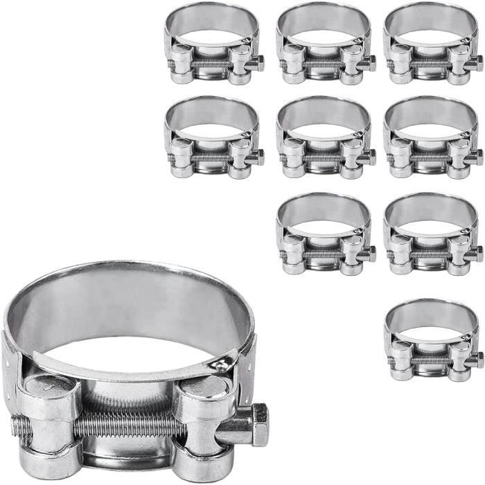 Pour tuyaux d'entrée et de vidange Serrez un tuyau d'arrosage sur un nez de robinet cannelé ou une gaine sur un raccord cannelé avec ce lot de 2 colliers de serrage à double fil de 45 mm de diamètre. En acier galvanisé, ces colliers de serrage assurent un serrage de qualité sans casse. Ils sont particulièrement adaptés aux flexibles semi-rigides, spiralés ou cannelés Collier à tourillons Acier galva W1 plage de serrage 40 x 43 mm - à l'unité Pour diamètre de 40 à 45 mm., Pour tuyaux de 1 1/2 Collier De Serrage Fixation Tuyaux Acier Lot De 10 Colliers De Serrage Acier Galvanisé 40-45 Mm - Pour Tuyauterie Et Fixation Colliers De Serrage Metallique Inox Les colliers de serrage sont faits d'une bande métallique et d'une ou deux vis pour le serrage. Ils sont parfois faits en matière plastique. Le diamètre du collier va se réduire à mesure que la vis sera serrée, et effectuer une pression uniforme sur le tuyau. Raccords et tubes Vous trouverez dans la catégorie des...Le profilé en caoutchouc EPDM protège contre les scription Le collier de serrage pour tuyaux doubles est...- Le collier de serrage convient pour serrer le tuyau de...- Le collier de serrage à 1 oreille convient pour raccorder...- Le collier de serrage à vis sans fin sert à fixer des... Collier de serrage pour 1 1/2 de 40 à 45 mm. Ces tailles sont disponibles dans notre gamme : 3/4' = 20-24 mm 1' = 24-28 mm 1 1/4' = 33-36 mm 1 1/2' = 24-28 mm 2' = 50-55 mm.