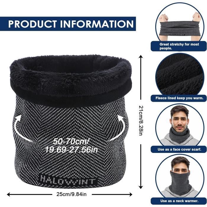 La couche intérieure est équipée d'une doublure en polaireépaisse et douce conçue pour vous garder confortablement au chaud et offrir une protection coupe-vent. OKIDSO Cache-cou d'hiver thermique tricoté 3 en 1 pour homme et Tu peux le porter comme cache cou, cache oreilles ou même demi-masque. Il est élastique, confortable et va avec tous tes outfits. Parfait pour le ski, la moto... Que ce soit pour les loisirs quotidiens ou le travail en plein air, ce foulard snood vous apportera les soins les plus attentionnés pendant le froid de l'hiver. 🔥【Tour de cou multifonctionnel】 : cette écharpe thermique est polyvalente et peut être utilisée comme écharpe, chapeau, masque facial, cache-cou ou masque facial. La couche extérieure, avec son tricot exquis, assure un superbe savoir-faire ,offrant un toucher doux et luxueux et prolongeant la durée de vie du cache-cou en polaire. Voici où la mode rencontre la fonctionnalité,vous assurant de rester confortable et élégant tout au long de l'hiver. 🎁【Cadeaux idéaux】 : ce foulard snood pour hommes et femmes est un choix de cadeau attentionné pour votre famille, vos proches et vos amis. ⛄【Confort et élasticité】: avec une référence de taille de 9,84in x 8,27in ,le cache-cou tricoté est élastique et s'adapte parfaitement à la plupart des hommes et des femmes adultes, offrant un ajustement agréable et ajusté et facile à enfiler. Il est doux, chaud et absorbe bien la transpiration. Cache cou long | N°1 sur les Tours de cou Cache Nez Hiver Homme TAGVO Cache Cou Elastique Pour Homme Et Femme, Tour De Cou En Tricot Coupe- Vent Et Respirant Snood, Écharpe Coupe-vent Hiver Doux Épais Doublure Polaire Pour Moto, Cyclisme, Ski Snood Femme Son design élégant et sa chaleur exceptionnelle en font un cadeau pratique et apprécié pour tous ceux qui affrontent le froid hivernal.