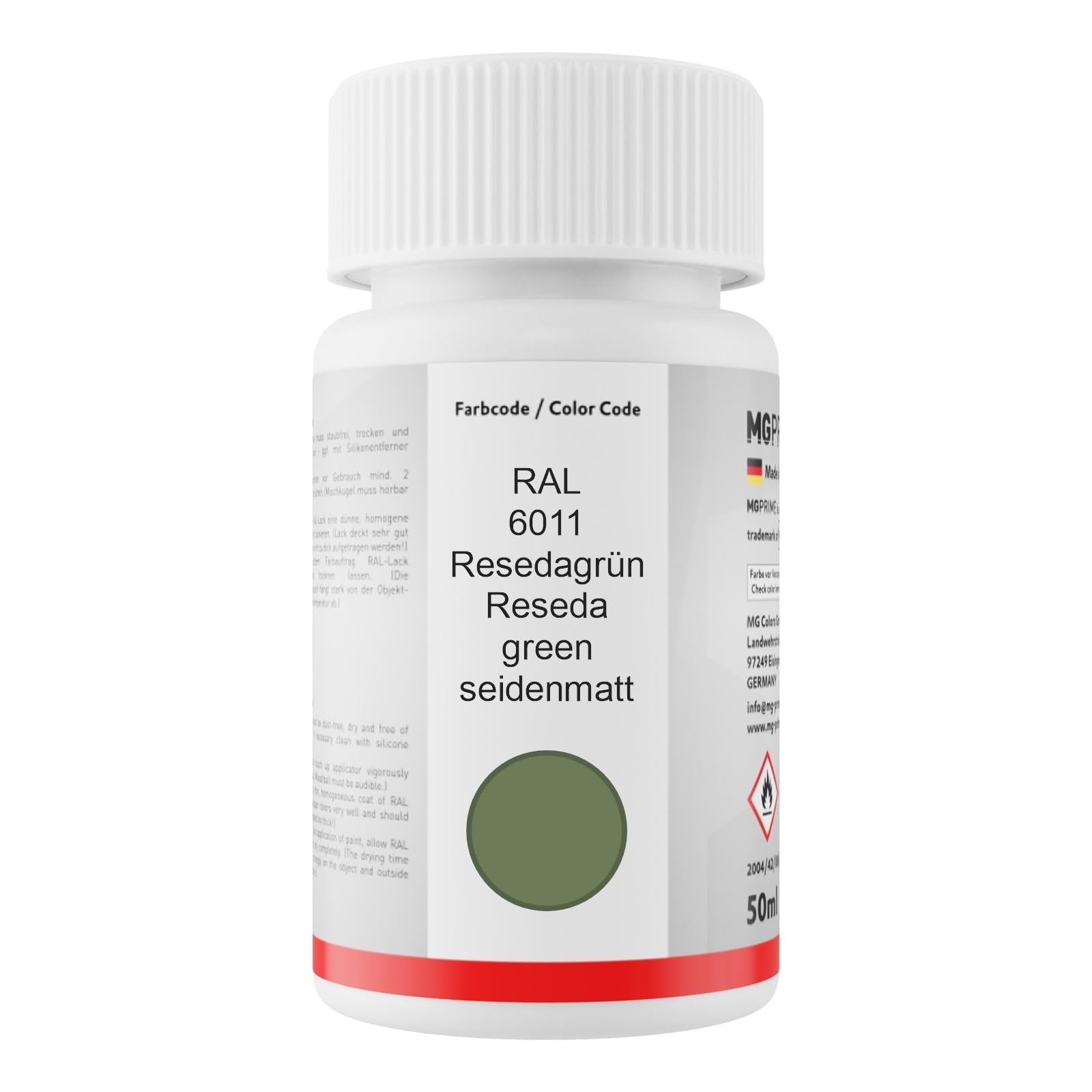 bombes aérosol, chacun avec une buse de tête de pulvérisation réglable RAL 6011 Vert réséda / Reseda green Bombe aérosol 400 ml mat séchage rapide Marque de voiture: RAL Code de peinture: 6011 Noms de peinture: Vert réséda, Reseda green, Resedagrün, Verde reseda, Resedagroen Taux de brillance: mat Utilisation La surface doit être sans poussière, seche et sans graisse - nettoyez-le avec nettoyant silicone si nécessaire. Bombe Vert Réséda 6011 RAL 6011 Vert Réséda/Reseda Green Mat Satiné Stylo Retouche 50 Ml à Séchage Rapide Bombe De Peinture Vert Réséda (La boule de mélange doit être audible). Laissez sécher complètement la peinture acrylique . peinture monocouche - Séchage rapide, excellente adhésion Ensuite peignez une couche fine et homogène de peinture. Farrow and ball Vert de Terre (234) vs RAL Reseda green (RAL 6011) side Peinture de qualité OEM / Original Equipment Manufacturer Pouvoir couvrant très élevé grâce à une bonne teneur de pigments dans la peinture Contenu de la livraison bombe aérosol de peinture acrylique 400 ml RAL 6011 Vert réséda / Reseda green mat qualité professionel Idéale pour peindre sur tous types de surface comme le métal, le fer, l'aluminium, le bois, le pvc, les plastiques, etc… Produit à séchage rapide ( /- 5min) et... Découvrez la couleur RAL 6011 : Bombe de peinture RAL 6011 VERT RÉSÉDA et choisissez votre bombe de peinture RAL de la qualité que vous souhaitez : à vernir, brillant direct 1K ou 2K, spécial aluminium, inox, carrelage, vous trouverez ici la bombe de peinture qui correspond à vos besoins. Régulation des COVAvec l'achat, vous acceptez le règlement COV applicable 2004/42/CE ou 199/13/CE. (Le temps de séchage est très dépendant de l'objet et de la température extérieure).