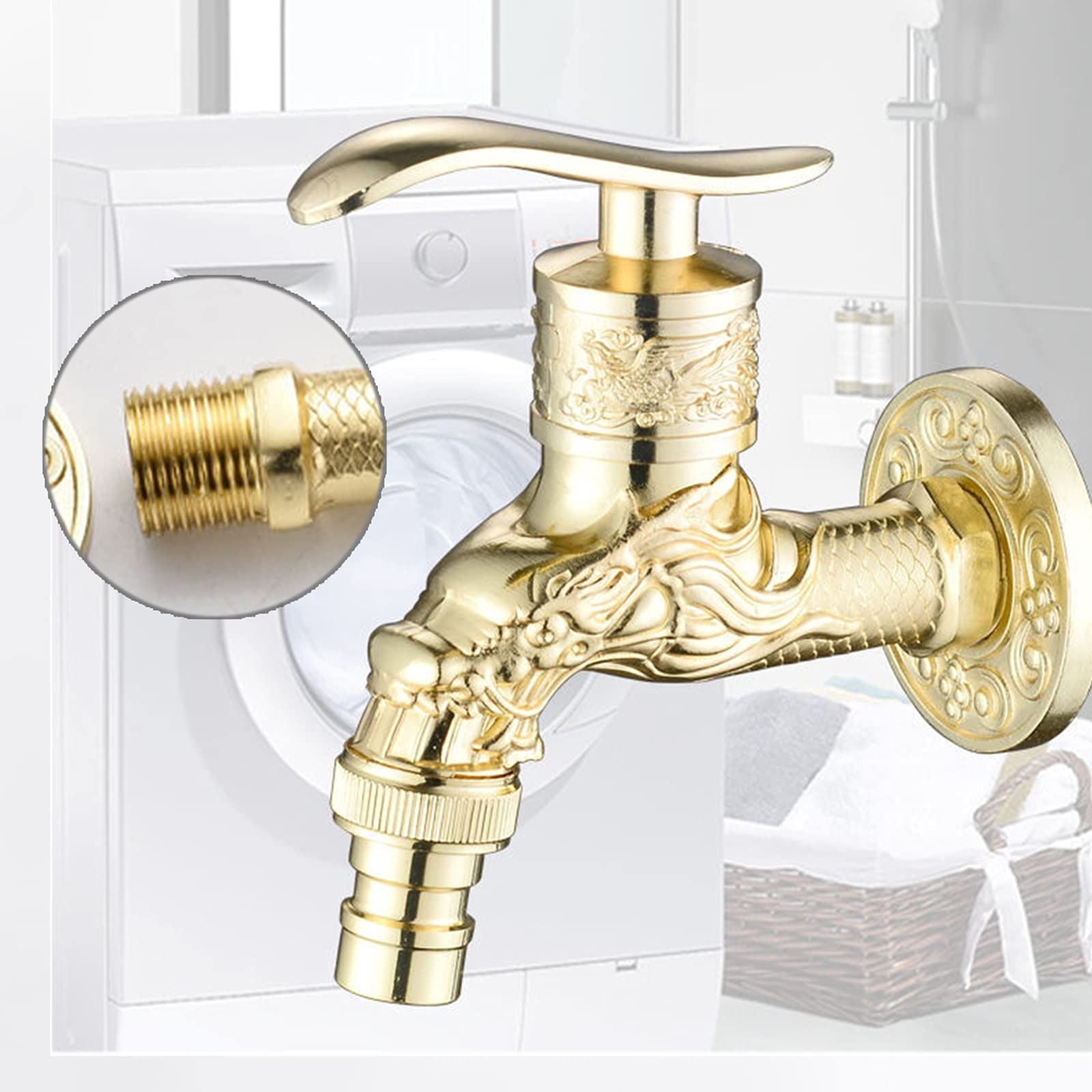 Ce robinet d'évier mural apporte une atmosphère luxueuse et solennelle à votre maison avec un aspect rétro classique oriental de dragon. Ce robinet d'évier mural apporte une atmosphère luxueuse et solennelle à votre maison avec un aspect rétro classique oriental de dragon. Le robinet mural... Il s'agit d'un robinet quart de tour, la poignée à levier unique offre un contrôle rapide et facile de la commutation du débit d'eau, le verrouille immédiatement sans fuite., Raccord fileté G1/2. Robinet Extérieur Robinet De Lavabo Mural En Laiton Pour Salle De Bain Ou Machine à Laver Robinet Exterieur Jardin Ce robinet d'eau froide peut être monté à l'intérieur ou à l'extérieur, largement utilisé dans la salle de bain, la buanderie, le jardin, la fontaine d'eau, etc. Robinet en laiton antique mural G1 / 2 pouces machine à laver robinet d... Robinet Laiton Dragon Sculpté Robinet Vintage Dragon Sculpté Le robinet mural est fabriqué en alliage de zinc de haute qualité, finition bronze brossé. Protège contre la corrosion et la rouille, ce qui peut durer longtemps.