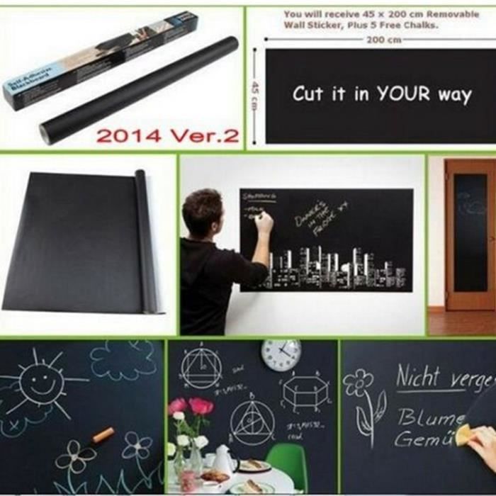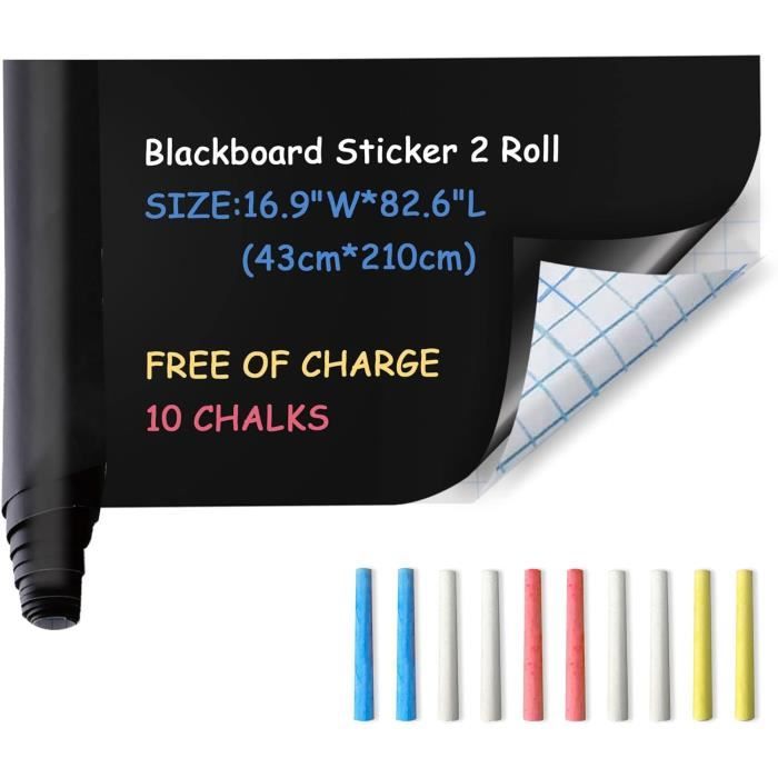 Film Magnétique Pour Tableau D-c-fix® 2x Feuilles DIN A3 Avec Craie Et 4 Petits Aimants Autocollant Adhésif Tableau Noir Vinyle Mural Amovible 50 cm x 100 cm + 2x craie POLYVALENT: Convient pour une utilisation intérieure sur les murs, les fenêtres, le béton, le bois, le plastique, les carreaux ou toute autre... Tableau A Craie Mural CON-TACT Tableau Adhésif En Vinyle, Noir 06F-C9052-06 Craie Tableau Noir Film vinyle noir sur lequel on peut écrire avec des craies douces et des marqueurs à craie liquide. Conçu pour être installé sur la plupart des surfaces lisses. Pour une personnalisation optimisée, le film peut également être imprimé avec la plupart des marques d'imprimantes UV Le forfait comprend: 1x tableau amovible sticker mural en vinyle tableau à 2 x craie blanc , Qualité: anisotrope