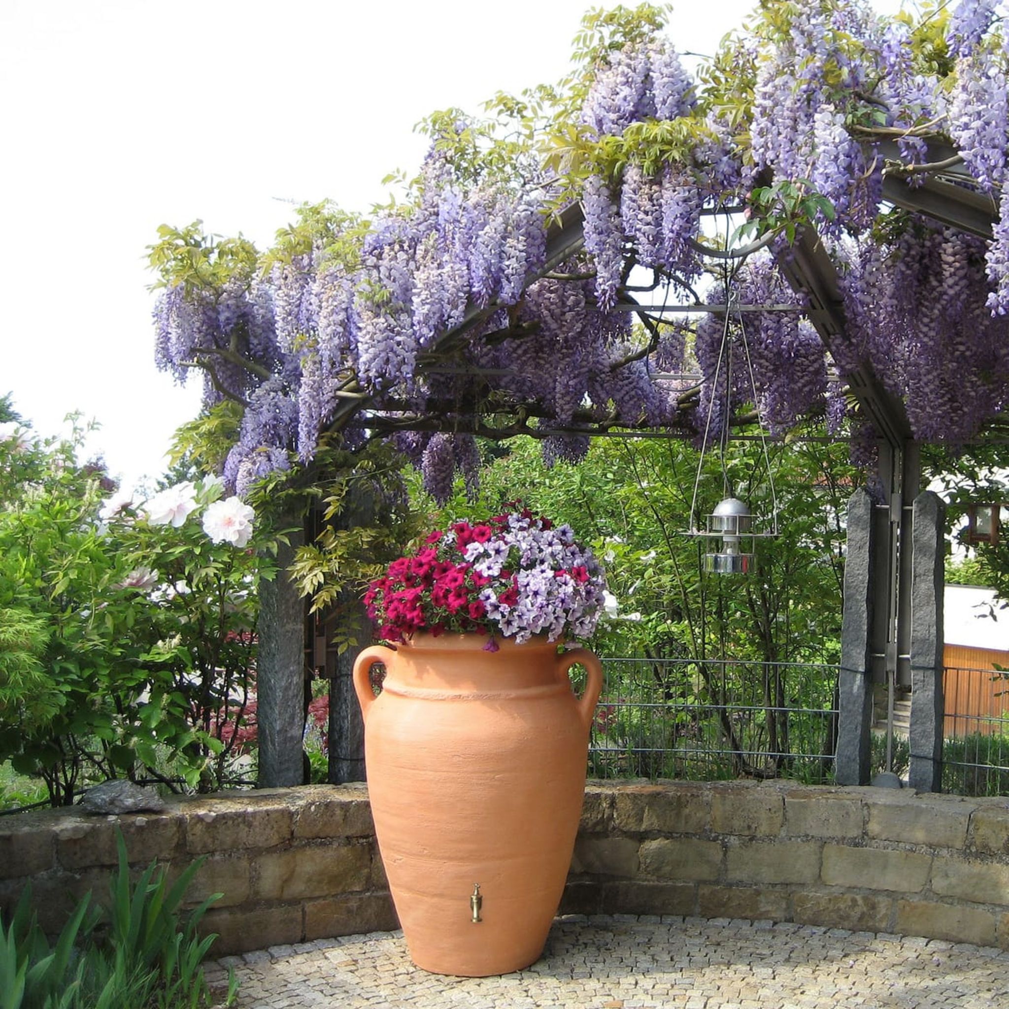 Utiliser un collecteur d’eau de pluie permet de réduire la consommation d’eau potable, les factures et le gaspillage, tout en préservant les ressources naturelles pour un arrosage responsable du jardin. Récupérateur d'eau demi - AMPHORE ANTIK terracotta - RECUPERATION E... Grâce à sa conception solide, il remplace avantageusement un tonneau plastique ou un bidon d’eau de pluie classique. Ce tonneau de pluie ressemble à un grand vase en terre cuite et est magnifique dans le jardin méditerranéen. Cuve à Eau De Pluie GARANTIA Récupérateur D'eau Amphore Aspect Terre Cuite 360L Avec Bac à Cuve Recuperation Eau De Pluie Un récupérateur d’eau de pluie sur votre balcon - Potager Au Balcon Une solution ingénieuse qui associe praticité et esthétisme, bien plus originale qu’un simple fut plastique ou qu’un récupérateur standard sans aménagement décoratif. Conception : Rotomoulée Sortie : Robinet Modèle cuve : Pré-Équipée Son style amphore transforme un système de récupération d’eau en véritable élément de décoration extérieure. 💧 GRANDE CAPACITÉ DE STOCKAGE 600 LITRES : Ce récupérateur d’eau de pluie en forme d’amphore terracotta permet de collecter et conserver une grande quantité d’eau issue des gouttières. Design exclusif - Apportez une touche méditerranéenne à votre jardin. Les collecteurs d'eau de la ligne exclusive myToolStore séduisent par leur apparence antique unique. Chaque modèle se distingue par une surface en 3D mate et de haute qualité, qui, grâce à une fabrication soignée, constitue une pièce unique avec des détails remarquables. Avec leur surface couleur terracotta chaude... Idéal pour l’arrosage du jardin, le potager, les plantes en bac ou le nettoyage des outils extérieurs, ce réservoir d’eau robuste et étanche constitue une alternative économique et écologique aux fûts plastiques classiques. Vous optimisez l’espace tout en embellissant votre extérieur naturellement. 🌸 BAC À PLANTES INTÉGRÉ POUR PLUS DE STYLE : Ce récupérateur d’eau de pluie est équipé d’un bac à plantes permettant de cultiver fleurs, herbes aromatiques ou petits arbustes directement sur la cuve. Compatible avec accessoires de vidange, vanne ou kit récupération eau de pluie, il garantit un usage pratique toute l’année. Entièrement recyclable, il constitue une alternative respectueuse de l’environnement aux cuves plastiques classiques.