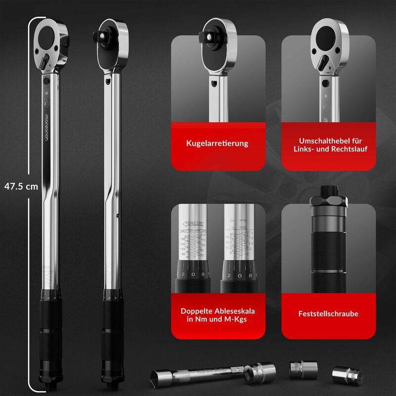 Outil professionnel pour un usage occasionnel ou commercial. CLÉ DYNAMOMÉTRIQUE AVEC CLIQUET-RÉGLABLE 1/2″ 70-350NM ACEM - CIMA Outil professionnel pour une utilisation commerciale ou occasionnelle · Fabriqué en acier Chrome Vanadium pour la résistance et la durabilité · Couple et réglage... fourni dans un boîtier moulé par soufflage pour faciliter le rangement et le transport., 1/2 clé dynamométrique , Précision + / 4% , 70nm - 350Nm et 7., 0CMKGS - 35MKGS. est livré avec certificat d'étalonnage et de l'écrou de blocage pour la précision de la Lecture. Avec cette clé vous pouvez sentir et entendre lorsque vous atteignez le couple correct. cliquet réversible toutes à l'aide d'un levier situé sur le haut de la roue à rochet. Total des 640mm de longueur. Fabriqué en acier au chrome-vanadium pour la résistance et la durabilité. vient avec une formule de conversion table et les instructions appropriées pour faciliter l'application. Clé dynamométrique 1/2'' 70-350 Nm FacomDescription Précision sortie usine : ± 2% Clé mono-sens utilisable en desserrage par retournement des embouts Clé numérotée livrée avec certificat d'étalonnage ISO 6789 Livrée en boîte plastique avec cliquet et poignée pivot Utilisation possible avec accessoires : -Attachement : 14 x 18mm -Diamètre : 30mmCaractéristiques Longueur : 725mm... Clef Dynamometrique AB Tools-US Pro Clé Dynamométrique 1/2" Cliquet Cliquez Sur 28 Cle Dynamometrique 1/2 Livré dans un boîtier moulé par soufflage