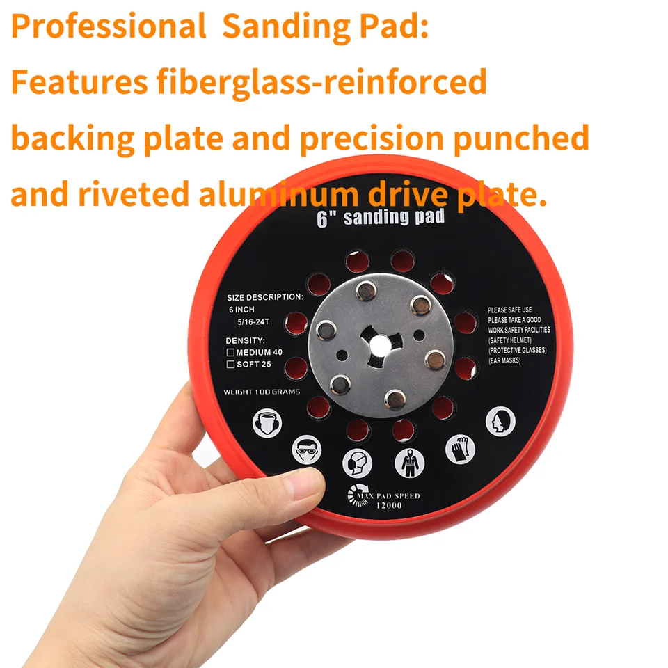 Fabriquée en MDF flexible de qualité supérieure, durable et écologique. Excellent équilibre de performance, rend le ponçage plus lisse et stable. Diamètre du filetage :25,4 mm : M5., 50,8 mm : M6., 76,2 mm : M6., 101,6 mm : M8., 127 mm : M8., 152,4 mm : M8., Contenu de la livraison :1 patin de support de ponçage. Accessoire de ponceuse murale - FARTOOLS - Plateau de ponçage D Caractéristiques :Crochet auto-fixant et support de boucle. Épaisseur du patin 127 mm : 9,66 mm. Fabriquée en MDF flexible de qualité supérieure, durable et écologique.Crochet auto-agrippant et boucle au dos, peut être remplacé rapidement et facilement, forte capacité de collage.Excellent équilibre de performance, rend le ponçage plus lisse et stable.S'adapte à la plupart des ponceuses orbitales aléatoires, convient pour le... Vitesse de fonctionnement maximale :50,8 mm : 10000 R., P., M., 76,2 mm : 10000 R., P., M., 101,6 mm : 10000 R., P., M., 127 mm : 10000 R., P., M., 152,4 mm : 10000 R., P., M. Épaisseur du patin 152,4 mm : 10,14 mm. Convient pour le meulage et le polissage de la pierre artificielle, des meubles, des produits en bois, du métal, des automobiles, etc. Crochet auto-agrippant et boucle au dos, peut être remplacé rapidement et facilement, forte capacité de collage. Disques Abrasifs 225 Mm Papier Abrasif Grain 80 8 Trous, Revêtement Abrasif Antiadhésif Pour... Plaque De Ponçage De 6 Pouces, Crochet Moyen Et Boucle Multi-trous Plaque De Meulage De Secours Rouge Pour Bosch GET75-6 Les Touristes-Mode Ponceuse Orbitale Aléatoire 1PC S’adapte à la plupart des ponceuses orbitales aléatoires.