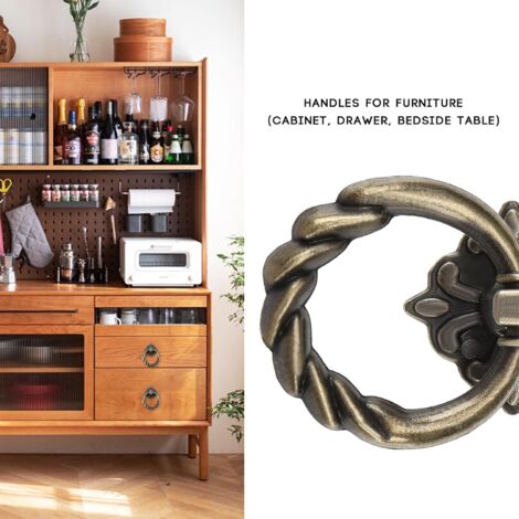 La poignée annulaire de tiroir classique est en alliage de zinc de haute qualité, Le design de haute qualité et élégant apporte un look rétro à vos tiroirs, Ajoutez une saveur antique à votre pièce. Exquisite Workmanship]Les poignées de tiroir sont composées d'un matériau en alliage de zinc, et les surfaces sont polies et peintes, ce qui les rend résistantes à l'usure, robustes, inaltérables et lisses. C'est un remplacement idéal pour les poignées classiques des meubles.[Vintage Style]Avec l'aspect bronze antique, les poignees meubles vintage ont un fort style médiéval... Poignée anneau bouton de tiroir bronze porte meuble style rétro ancien - bouton de porte avec vis, relooking commode nos poignées de porte annulaires peuvent être facilement installées à l'aide de petits outils ménagers. la poignée de tiroir en forme d'anneau convient aux boîtes à bijoux, petites boîtes en bois, armoires, coiffeuses, coiffeuses et autres meubles. Spécification : Matériel : alliage de zinc Couleur : comme indiqué Taille: 54mm * 44mm * 24mm Quantité : 8 Le forfait comprend : 8 x anneau de traction 8 x vis Le design est simple et beau, et le tiroir ou la boîte à bijoux peut être facilement ouvert. Très belle apparence et facile à installer. Fabriqué en alliage de zinc de haute qualité avec une surface lisse. Cela contribuera à rendre vos meubles plus élégants et charmants. Poignée Anneau De Tiroir Poignee Tiroir 12 Pièces Poignées De Tiroir Boutons Anneau De Goutte Anneau Pour Poignée De Porte 4 poignées de traction pour armoire] : le paquet contient 4 poignées de traction en anneau pour armoire et 4 vis, la quantité est suffisante pour répondre à vos besoins.[Matériau en alliage durable] : Les poignées de tiroir et la poignée annulaire sont fabriquées en alliage de haute qualité, peinture par pulvérisation par galvanoplastie multicouche, longue durée de vie... 10 pcs bouton d'armoire en bronze antique : poignée de