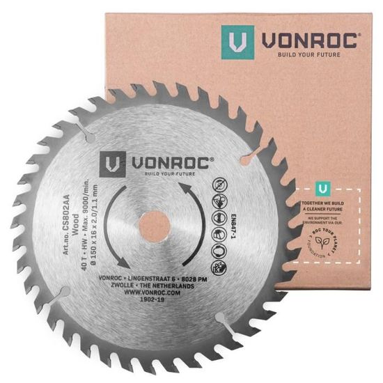 Précision et Rapidité - Réalisez des coupes rapides et précises dans le bois massif, les panneaux de fibres et le contreplaqué grâce à cette lame extra fine spécialement conçue pour les scies circulaires à batterie. Optez pour la lame CS802AA pour des coupes plus larges et grossières. Diamètre intérieur (passage d'arbre) : 16 mm Matériau en feuille : acier au carbone 50, avec pointes en carbure Largeur de coupe : 2 mm , Diamètre max., vitesse : 9000 / min Vous pouvez commander, en supplément, la batterie interchangeable 2., 0Ah ou la batterie 4., 0Ah. Cette lame est fabriquée avec un métal de qualité supérieure qui vous garantit une utilisation sur le long terme. Mini scie circulaire / plongeante VONROC 500W - 85mm - Rail de guidage Il est important que la scie circulaire soit adaptée aux lames de scie avec un diamètre de passage d'arbre de 16 mm et une épaisseur de 1,1 mm. Scie circulaire sans fil 20 V (Sans batterie) Cette scie circulaire est vendue sans batterie ni chargeur. VONROC Scie à chantourner 120W - 6 lames de scie incluses - avec pédale... Nombre total de dents : 18 Le Choix du Meilleur Outil - VONROC développe toute une gamme d'outils et d’accessoires de bricolage de haute qualité. Lame de scie circulaire VONROC - 18 dents 150 x 16 x 2., 0/1., 1mm - pour bois Utilisez cette lame de scie circulaire VONROC pour couper rapidement de grandes sections dans le bois, les panneaux de fibres de bois, le bois massif et le contreplaqué. Épaisseur de la lame de scie : 1., 1mm Grâce à elle, vous allez pouvoir scier du bois avec votre propre matériel. Avec ses 18 dents, ce disque vous accompagnera dans tous vos travaux et vos réalisations. Emballage Respectueux de l'Environnement - Livrée dans une boîte éco-responsable sans impressions colorées, accompagnée d'une carte d’adhésion VONROC, cette lame combine performance et respect de l'environnement pour une expérience complète dès l'ouverture. Ceci parce que la scie fait partie de la gamme d'outils sans fil à battetrie VONROC VPower 20V. Compatibilité Universelle - Adaptée à plusieurs marques de scies circulaires de 150mm, elle nécessite un diamètre de passage d'arbre de 16 mm et une épaisseur de 1,1 mm, offrant polyvalence et efficacité. VONROC Lames de Scie Circulaire 18 Dents - 150 mm x 16 mm - Coupe Rapide et Net pour Bois - Universelles pour Scies Circulaires à Batterie - Précis Lame Scie Circulaire 165 Lame De Scie Circulaire VONROC - 185x20mm - 48T - Pour Bois Universelle 84377093 Scie Radiale La Scie circulaire 20V est une composante de la plateforme sans fil VONROC VPower 20V. Cette lame de scie convient non seulement à la scie circulaire à batterie VONROC, mais également aux scies circulaires des autres marques de 115 mm.