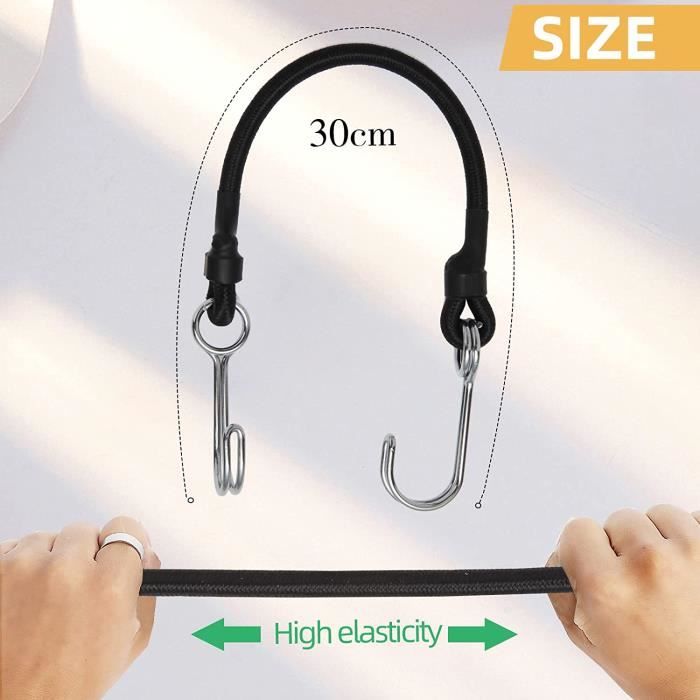 Caractéristiques et fonctionnalités : les tendeurs sont résistants aux UV et peuvent résister aux éléments extérieurs les plus difficiles. tendeur sandow avec crochets acier Matériau de qualité supérieure : le noyau intérieur en latex naturel super élastique offre une tension constante et est 50 % plus durable que le caoutchouc... clips p, (1) Sac en PVC. Un outil essentiel pour sécuriser la cargaison et les charges sur les motos, voitures, camions, remorques, camping-cars, motos, vélos. Parfaites pour les voyageurs fréquents et les amateurs de plein air ou de camping, ces sangles élastiques de qualité supérieure sécuriseront vos articles importants en toute sécurité, sans se casser ou se détériorer. Large application : l'ensemble de cordons élastiques répondra à tous vos besoins de voyage, de jardinage, de cargaison, de camping et de rangement à la maison. Les crochets sont recouverts de plastique résistant aux UV pour augmenter la durée de vie du produit et protéger vos effets personnels contre les rayures indésirables et les conditions météorologiques difficiles. Multifonction et pratique pour une utilisation à la maison, dans la voiture, dans un camion, une moto, un camping-car, un VTT et le camping tels que les cordons élastiques courts colorés de tailles multiples avec crochets également pour les tentes de toit, les mini cordons élastiques avec crochets et cordons élastiques avec boules pour les sangles de bâche de camping, filet élastique pour filet de moto, etc. Plusieurs tailles : 6 pièces de 45,7 cm, 4 pièces de 61 cm, 2 pièces de 81,3 cm, 2 tendeurs robustes de 101,6 cm avec crochets, 6 mini cordons de 25,4 cm, 6 attaches de 20,3 cm résistantes aux UV, 4 goudrons. Cordes élastiques avec crochets, paquet de 12, Cordes élastiques en caoutchouc ajustables 8,15 € Livraison gratuite Prix après Cashback 8,15 € HJ Garden Lot de 24 tendeurs lastiques noirs de 30 cm et 12 pouces pour auvent, b che, sangles d'arrimage, corde de fixation pour tente 33,11 € Livraison gratuite Prix après Cashback 33,11 GOEASY0312 Lot De 6 Tendeurs élastiques Noirs Avec Crochets 【Expérience 5 étoiles garantie】Si vous n'êtes pas 100 % satisfait pour quelque raison que ce soit, nous vous rembourserons votre argent.