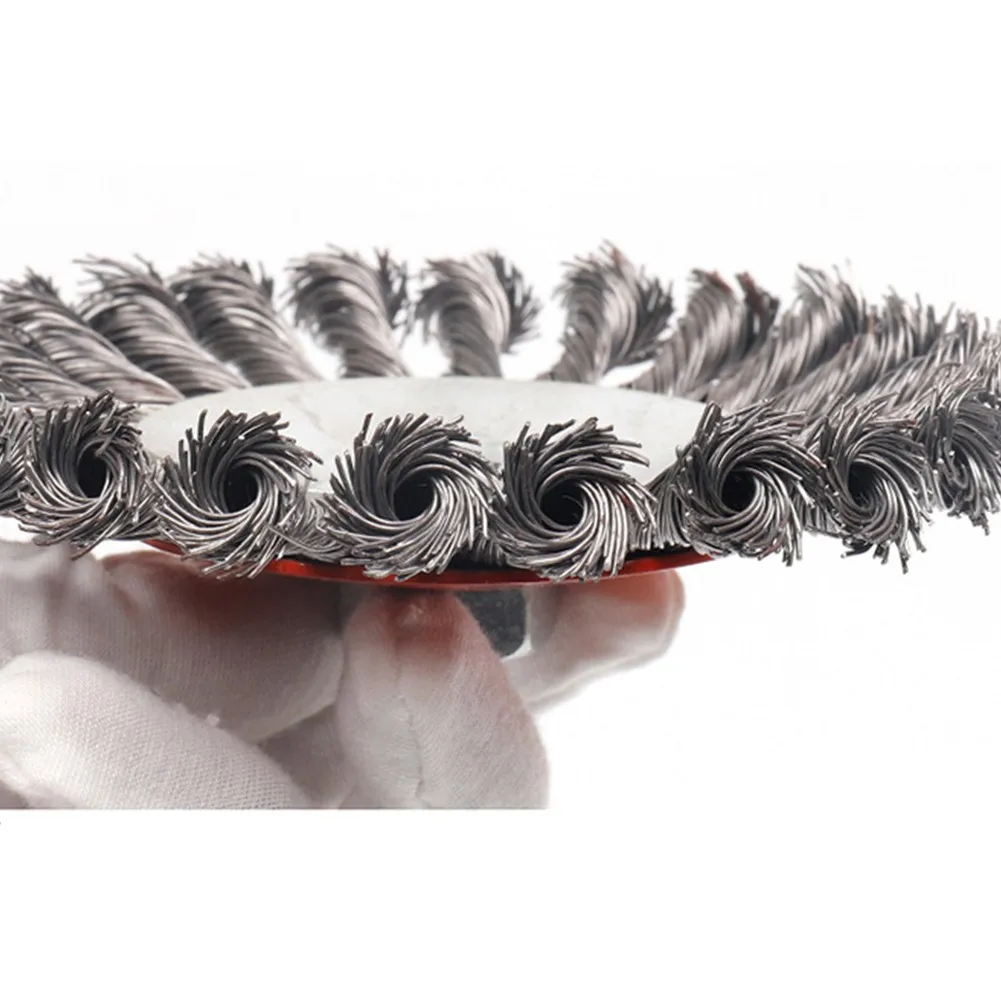 Ce que vous obtenez : le colis comprend 4 brosses métalliques torsadées de 100 mm de diamètre. Brosse de nettoyage métallique, 4pcs brosse à treillis métallique M14... Convient pour meuleuse d'angle avec filetage M14 x 2. Filetage standard : M14 x 2., Tours maximum : 12500 tr/min par minute. Brosse Métallique Leroy Merlin Brosse Métallique Torsadée Pour Meuleuse D'angle 100 Mm - Filetage M14 X 2 - Élimination Efficace De La Rouille Et De La Peinture - Qualité Brosse Metallique Meuleuse Lot de 4 brosses rotatives en fil d'acier pour meuleuse d Caractéristiques : 2., Nombreuses applications, telles que le retrait de la rouille, de la peinture, de la soudure et de la corrosion lourde, le polissage et le meulage de surfaces en bois et métal., 2., Filetage M14 x 2., 3., Plaques de fixation intérieures et extérieures pour mieux garder les fils pendant le travail., 4., Fils en acier au carbone de haute qualité pour garantir la durabilité. Diamètre du fil : 0,5 mm.