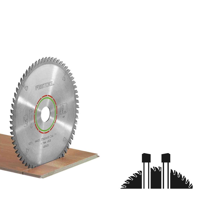 Lame de scie circulaire FESTOOL - bois - Ø210 mm - 18 dents - 493197 HM–Sägeblatt 210x2,6x30 Z= 16 Flachzahn f. Holz speziell für Festo Angle de lame : 20°; Forme des dents : W. Principales utilisations : Pour tous les matériaux de bois; Pour les panneaux de construction; Pour les plastiques... Festool Accessoires 493197 Lame de scie circulaire HW 210x2,6x30 W18 WOOD STANDARD Bonne offre sur ✓ Toutes marques connues ✓ Bonne qualité... La qualité au service de la coupe Avantages et bénéfices Performances de coupe en longueur élevées dans le bois massif Dents de scie fabriquées en métal de grande qualité - pour une progression optimale du sciage et des coupes parfaites Langle de coupe et la forme des dents sont adaptées à lapplication et à la machine Un code couleur facilite le choix de la lame Principales utilisations Pour un travail rapide et sans effort, notamment lors de la coupe longitudinale dans le bois massif Pour les bois durs et tendres Tronçonnage de planches et autres pièces en bois massif Ebénisterie Construction de terrasses Réalisation de façades Adapté pour pour TS 55, TSC 55, ATF 55, AP 55 emballage sous blister Informations techniques Diamètre 160 mm Largeur de coupe 2.2 mm Ø alésage 20 mm Nombre de dents 12 Angle de lame 20 ° Forme des dents PW Dimensions du colis (L x l x h): 21,5 x 20,5 x 1 cm Poids du colis: 0,309 kg Contenu de lemballage: 1 pièce Cadence de sciage rapide sans grand effort grâce à la forme des dents bien adaptée. Lame Scie Circulaire 210x30 Lame De Scie Circulaire HW 230x2,5x30 W24 WOOD STANDARD Scie Circulaire Festool