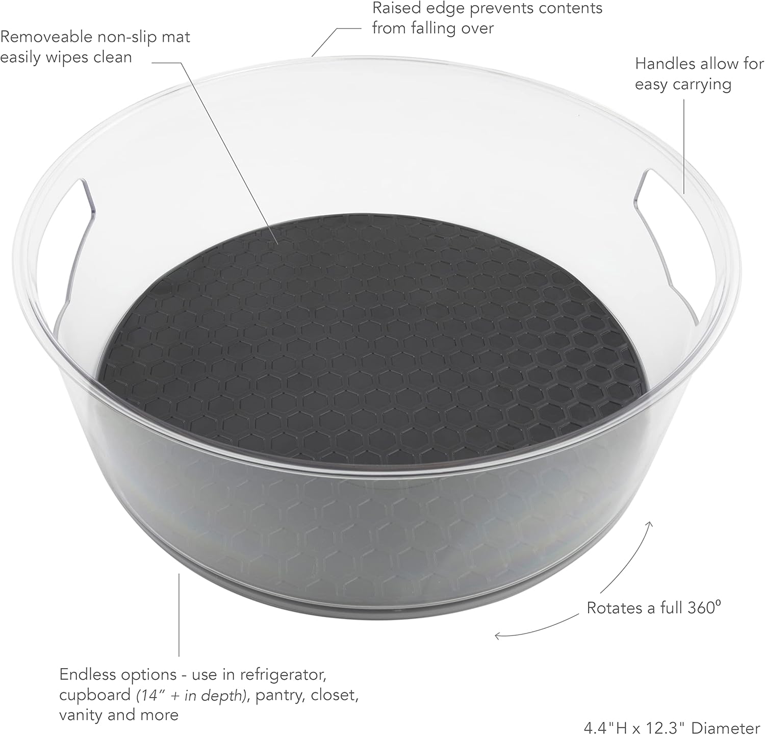 Fabriqué à partir de plastique durable, cet organisateur de plateau est conçu pour durer et répondra à vos besoins de stockage de réfrigérateur pour les années à venir. Entretien simple : prendre soin de HEXA Lazy Susan de Spectrum est simple. Pour un look frais et propre, il suffit de le laver à la main avec du savon et de l'eau chaude. Plateau Hexa en Plaid, Lazy Susan pour épices et Senegal Transport facile et accessibilité : les poignées intégrées permettent de transporter sans effort le HEXA Lazy Susan de Spectrum du réfrigérateur à la table à manger ou tout autre endroit, vous assurant d'avoir tout ce dont vous avez besoin à portée de main. Spectrum Lazy Susan Organiseur Hexa 3 Séparateurs 27,9 Cm – Plateau Tournant Lazy Susan Pour Armoire, Réfrigérateur, Garde-manger, Table Et étagère – Organisation Rotative Et Rotative – Étagère De Design optimisé pour plus de sécurité et d'efficacité : la suspension HEXA Lazy Susan de Spectrum dispose de côtés fermés, assurant que les articles restent en sécurité sans risque de tomber ou de se renverser. Il est parfait pour les réfrigérateurs, les placards (plus de 35,6 cm de profondeur), les garde-manger et les tables à manger, ce qui en fait un choix pratique pour accéder à tout, des condiments aux fournitures de pâtisserie. Placement et application polyvalents : ce support extensible HEXA Lazy Susan de Spectrum s'adapte parfaitement à différents endroits de votre maison. Gardez vos condiments et épices dans un endroit facile d'accès avec le HEXA Medium Lazy Susan de Spectrum Diversified. Fabriqué à partir de plastique durable, cet organisateur de plateau est conçu pour durer et répondra à vos besoins de stockage de réfrigérateur pour les années à venir