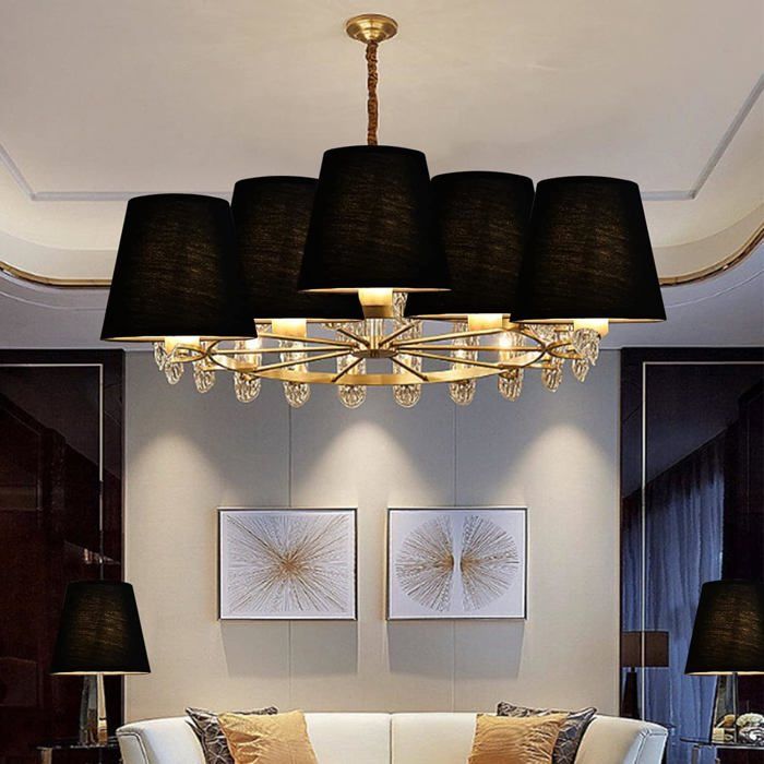 Spécification: Item Type: Lampshade Material: Iron + Cloth Color: Black Lampshade Upper Diameter: Approx., 8., 7cm / 3., 4in Lampshade Slope Length: Approx., 11cm / 4., 3in Lampshade Lower Diameter: Approx., 12., 2cm / 4., 8in Height: Approx., 11cm / 4., 3in Weight: Approx., 632g / 22., 3oz Application: Cloth lamp shade Applicable Bulbs: E14 bulbs, candle bulbs Installation Type: Snap-in Application: Only applicable to E14 bulbs, candle bulbs, not applicable to spherical bulbs, round bulbs, spiral bulbs, rod bulbs, etc. Description générale Les abat-jours modernes minimalistes en tissu noir sont conçus pour offrir un éclairage confortable et non éblouissant, idéal pour une utilisation de jour comme de nuit. Leur design intelligent aide à prévenir les moustiques, garantissant ainsi une meilleure sécurité autour de la source de lumière. Ces abat-jours sont polyvalents et peuvent être utilisés avec... Thanks for your understanding., 2., Monitors are not calibrated same, item color displayed in photos may be showing slightly different from the real object. Lot De 6 Petits Abat-jour, Lampe Suspendue, Lampe De Table Applique Murale Abat Jour En Cristal Pvc Pour Cuisine Chambre A Coucher Chevet Salon Facile à installer, installation par encliquetage, convient aux ampoules E14, ampoules à bougie, ne convient pas aux ampoules sphériques, ampoules rondes, ampoules en spirale, ampoules à tige, etc. Spécifications: Typed'article:abat-jour Matériau:tissu fer Couleur:noir doubluredorée Tailleduproduit:environ8,3x15,2x12cm/3,3x6,0x4,7pouces... Lustre Flik Avec 4 Abat-jour En Tissu En Forme De Feuille Noir Et Dore 4xe14 O102cm Le produit est fait de tissu de haute qualité, résistant à l'usure et soyeux, pas facile de se blesser les mains, exécution exquise, léger, classique et haut de gamme. Package List: 6 x Lampshade Note: 1., Please allow 1‑2in error due to manual measurement.