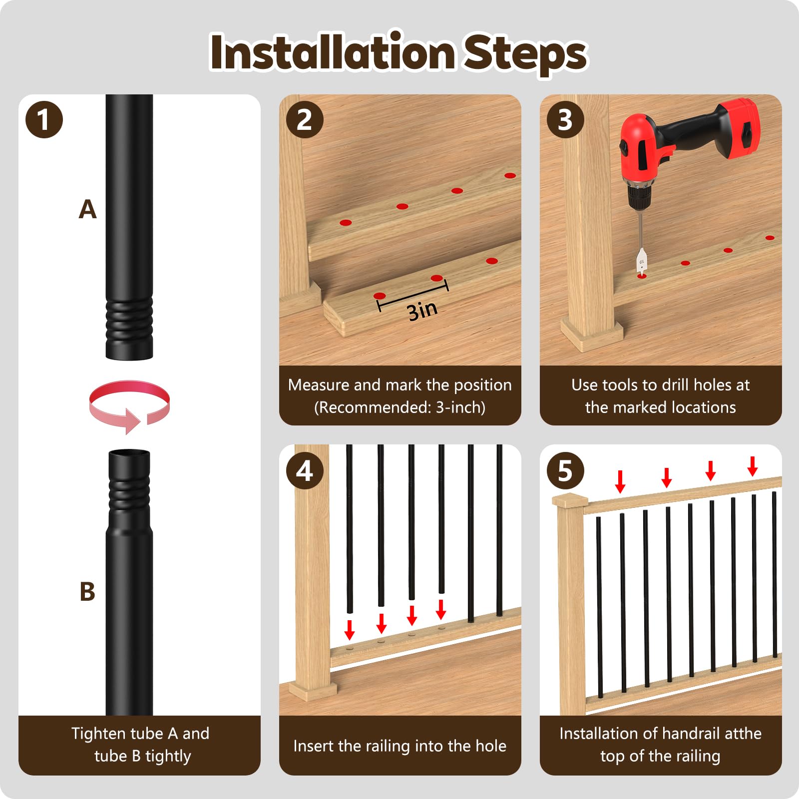 Robuste et durable : s'il y a des dommages lors de l'utilisation, nous le remplacerons pour vous, montrant notre engagement envers vous et la confiance que nous avons dans les balustres de terrasse, HZIU est là pour soutenir vos balustres de terrasse pour les années à venir. Contrôle de la qualité du stirct : chaque balustre de terrasse est soigneusement fabriqué pour adhérer au processus de fabrication ISO9001., Conforme aux normes de construction rigoureuses. Caractéristiques : Finition avec revêtement en poudre pour une grande durabilité. Très solide, sûr, imperméable, résistant à la corrosion, stable et beau Fojely Lot de 51 balustres de terrasse de 81,3 x 2,5 cm, balustres Ils sont à la fois pratiques et décoratifs. Design élégant, robuste et idéale pour intérieur ou extérieur.Achetez maintenant ! Grâce aux trous pré-percés et aux vis, ils sont faciles à installer. Un accoudoir de soutien parfait pour les personnes âgées et handicapées, les membres de la famille et les groupes d'urgence. Installation facile : il est équipé des vis d'installation nécessaires, qui peuvent être rapidement installées par une personne, (1., Mesurez et marquez l'emplacement du balustre., 2., Fixez correctement la balustrade., 3., Vis d'installation Fabriqué en aluminium de haute qualité avec une finition revêtue de poudre noire pour une protection supplémentaire contre la rouille et la corrosion et de faibles coûts d'entretien Ajoutez un peu de vos pensées et il n'y a aucun doute qu'il peut ajouter du style à n'importe quelle terrasse ou porche. Réputés pour leur solidité et leur élégance intemporelle, les balustres en fer forgé constituent un excellent choix pour les escaliers classiques comme... Lot de 50 balustres de terrasse de 81,3 cm de large et 10,2 cm : 50 balustres ; 100 vis. Le scénario d'application n'est pas seulement les terrasses, les escaliers, les cours, les balcons, mais aussi tout autre endroit où des balustrades sont nécessaires. Les balustres sont conçus avec une forme de vague incurvée, moderne et élégant pour votre terrasse. Myard – Lot De 25 Balustres De Terrasse Carrés En Fer De 81,3 Cm Pour Terrasse, Garde-corps, Clôture De Terrasse, Aspect Moderne (noir Mat Applicable : les balustres sont largement utilisés en extérieur ou en intérieur, adaptés pour la terrasse, les escaliers, les balustrades de porche, la cour, le balcon et d'autres endroits qui ont besoin d'une protection de clôture., ., Étapes d'installation : 2., Percez un trou à la marque., 3., Remettez les poteaux verticaux en position perforée., 4., Placez la main courante sur la colonne pour régler l'angle du haut de la colonne, puis marquez la position de la perforation en haut de la main courante., 6., Faites un trou à la marque., 7., Fixer avec des vis autotaraudeuses., 8., L'installation est terminée.