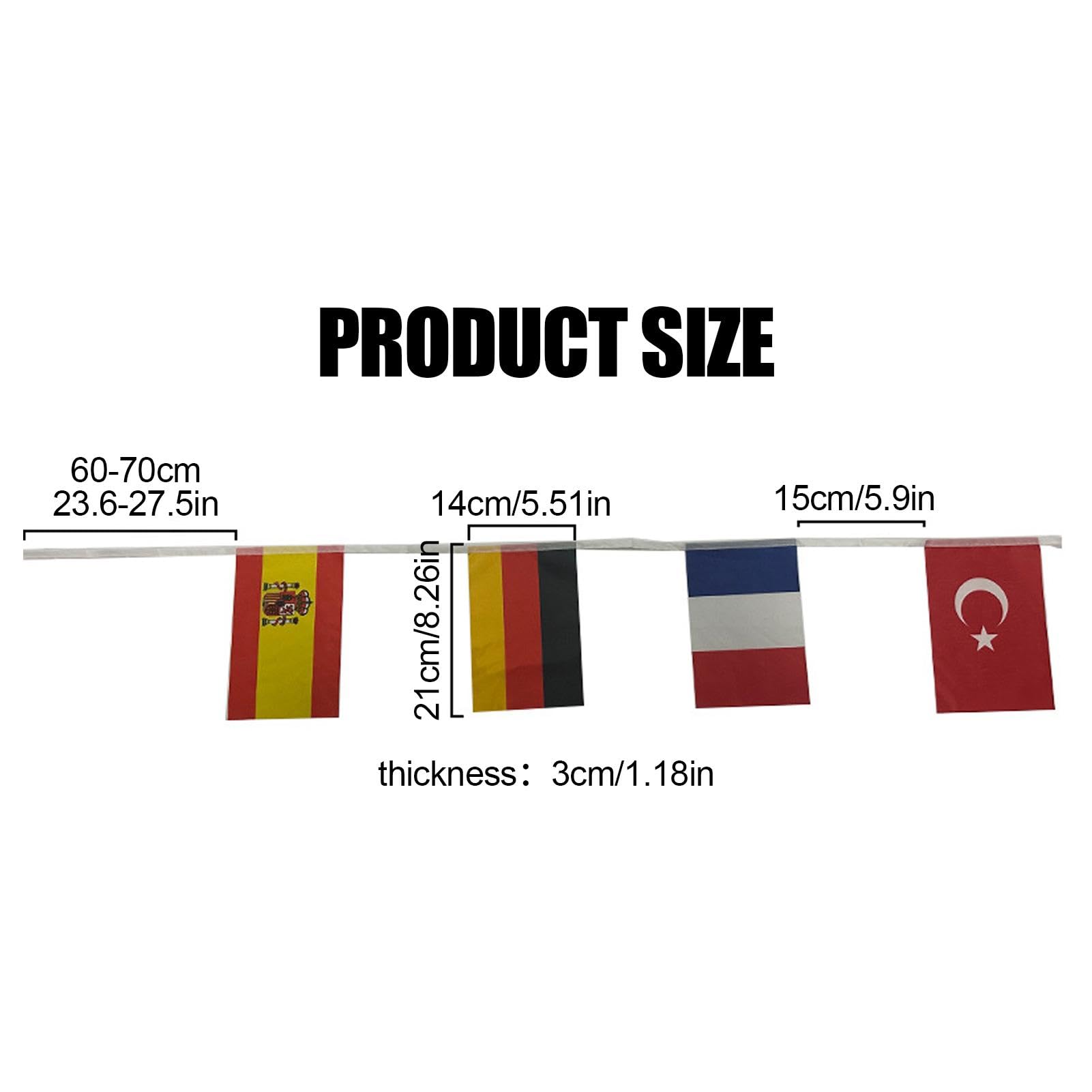 Spécifications : Type : 24 drapeaux de pays Matériau : Polyester Taille : 14 x 21 cm Le forfait comprend : 2 * guirlandes de drapeaux de 24 pays Remarques : 1., Mesure manuelle, veuillez permettre de légères erreurs de taille., 2., La couleur peut varier légèrement en raison des différents affichages d'écran. 【Matériau】 Notre guirlandes de drapeaux de 24 pays est conçue pour durer et est fabriquée en tissu 100 % polyester durable. Guirlandes des 24 nations participantes à l'euro foot 2021 Drapeau Euro 2024 Xiujuers 2 Pcs Drapeaux Euro Guirlandes 2024, 24 Pays Drapeaux Européen Drapeaux Pays Caractéristiques : 1., Les drapeaux euro football sont très lumineuses et correspondent au drapeau national du pays respectif, lumineuses et sophistiquées., 2., Notre guirlande drapeau eurovision offre non seulement des couleurs vives, un tissu durable et des propriétés résistantes à la décoloration., 3., Cette drapeaux euro guirlandes 2024 est parfaite pour décorer les soirées à thème de l'Euro 2024, les pubs, les événements de club et les rassemblements dans le jardin. Guirlande drapeau euro 2024 pour que vous puissiez ressentir à l'avance la joie du Championnat d'Europe. 24 drapeaux du monde pour euro football facile accrocher pour d corer votre maison, bar, club, jardin. Nos drapeaux contiennent tous les pays du Championnat d'Europe de football 2024. 【Chaîne de drapeaux】 Les 24 pays des drapeaux du Championnat d'Europe 2024 : Allemagne, Écosse, Hongrie, Suisse, Espagne, Croatie, Italie, Albanie, Slovénie, Danemark, Serbie, Angleterre, Pologne, Pays-Bas, Autriche, France, Belgique, Slovaquie, Roumanie, Ukraine, Turquie, Géorgie, Portugal, République tchèque. Le drapeau conserve longtemps sa couleur vive d'origine, même après la pluie. Guirlande drapeaux pays européens en plastique ultra résistant. Référence EE20227. 12,15 € HT pièce. (14,58 € TTC). Drapeau français Fabrication française Prêt pour l'Euro 2024 ? Cette guirlande de 24 drapeaux de pays (14x21cm chacun) sur 8m de long va transformer ton espace ! En tissu résistant, imperméable... Qu'il peut r sister de multiples utilisations et ajouter une touche joyeuse n'importe quelle occasion. 【Réutilisables et stables】 Nos drapeaux euro football sont non seulement colorés et visuellement attrayants, mais également faciles à accrocher et à réutiliser.