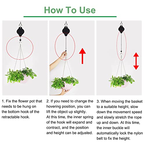 Convient à divers espaces extérieurs et intérieurs, tels que les jardins, cours, patios, balcons, porches, terrasses, etc., 3., Forte capacité de charge - peut supporter des poids de 1 kg à 20 kg, qu'il s'agisse de plantes suspendues, de décorations ou de lampes, il peut facilement y faire face, assurant la sécurité et la stabilité des objets suspendus. Forte Capacité De Charge : peut supporter des poids de 1 kg à 20 kg, qu'il s'agisse de plantes suspendues, de décorations ou de lampes, il peut facilement y faire face, assurant la sécurité et la stabilité des objets suspendus. Le câble métallique est conçu en acier inoxydable et les crochets ouverts sont fixés aux deux extrémités, ce qui est pratique, plus sûr et plus sécurisé. Flexibility]You can use this retractable plant hanger to quickly raise and lower plants, it can hover anywhere you need, with more than ten fixed points within 90cm. This will also keep your plants off the ground. Then your cats and dogs won't destroy your plants Haute qualité : la poulie pour plantes est fabriquée en corde de nylon solide, crochet en acier inoxydable et coque en plastique de haute qualité. Le crochet triangulaire sur le dessus du cadre de la poulie peut pivoter à 360 degrés, ce qui est pratique pour l'alimentation multidirectionnelle des oiseaux et l'arrosage des plantes Poulie Retractable Pour Panier Lot De 2 Poulies Rétractables Solides Pour Panier à Suspendre Pour Plantes Et Fleurs - Pour Paniers De Jardin, Pots Et Mangeoire à Oiseaux - Pour Poulie Pour Plantes Leroy Merlin Charge Stable - Le dessus est fixé avec un anneau en acier de haute qualité pour garantir que la structure du crochet est stable et difficile à casser, offrant une capacité de charge fiable. LOT DE 2 poulies rétractables pour panier suspendu poulie Achetez En Toute Confiance : pour vous fournir un service de la plus haute qualité, si vous avez des questions, n'hésitez pas à nous contacter. Flexible à Utiliser : le crochet télescopique adopte une conception à ressort interne avec une plus grande élasticité, qui peut être facilement étirée jusqu'à environ 160 cm, vous permettant d'ajuster la hauteur selon vos besoins. Nous fournirons un service après-vente jusqu'à ce que vous soyez satisfait.