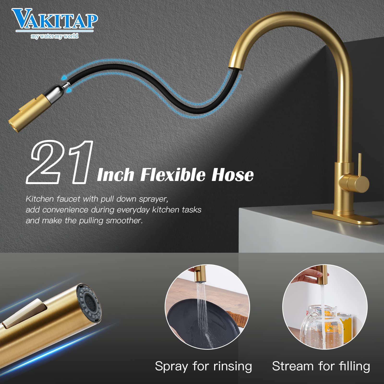 Excellente fonctionnalité : robinet d'évier utilitaire avec 2 modes de pulvérisation (flux et pulvérisation) – jet pour le remplissage, pulvérisation pour le rinçage. Mitigeur Cuisine Laiton Robinet De Cuisine Doré Brossé U-forme, Mitigeur Evier Flexible Robinet Doré Cuisine Épaisseur maximale du plan de travail : 4,6 cm max. Le robinet de cuisine entre dans votre vie quotidienne, assurez-vous que vous êtes agréable avec votre choix aujourd'hui, VAKITAP a un service après-vente à vie qui répondra à vos besoins pour toujours. Points forts : Couleur(s) : doré; Type de bec : Douchette; Economie d'eau : Oui; Finition : Brossé. Voir... Sélectionnez votre couleur préférée et « Ajouter au panier » maintenant Contenu : 1 x emporte-pièce., 1., Robinet de cuisine pré-installé 2., Plateau de 25,4 cm., 3., Boule de gravité 4., Clé en plastique., 5., Instructions d'installation : 6., Adaptateurs de 1,27 cm avec rondelles 2 pièces chacune., 7., Kit d'écrous de fixation. Choix parfait et matériau : le robinet d'évier de cuisine brossé moderne VAKITAP est fabriqué en acier inoxydable SUS304 durable avec une finition or brossé... Capable pour comptoir 1 et 3 trous Débit d'eau : 2 GMP. Matériau principal : acier inoxydable Sus304., Fonction de pulvérisation : jet et pulvérisation. Synlyn Robinet de cuisine basse pression en acier inoxydable SUS304 Trou de montage : 3,5-3,8 cm. Portée du bec : 21 cm. Dimensions : Hauteur totale : 43 cm. Les robinets haut de gamme conformes aux réglementations à faible teneur en plomb sont l'un des meilleurs choix pour rendre l'eau pratique et sûre pour les membres de la famille Fonction de pulvérisation : poignée unique réglable – Contrôle facile du volume et de la température de l'eau, bec pivotant à 360 degrés et pulvérisateur rabattable de 53,3 cm, robinet d'évier de cuisine qui rend les routines de cuisine plus efficaces