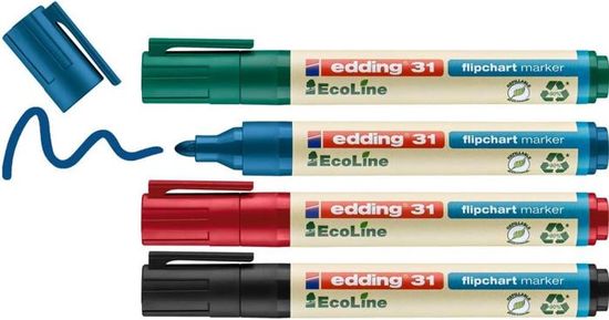 Capuchon réversible, clip disponible. Capuchon et embout de la couleur de l'encre. Nom de l'article : Marqueur pour tableau de conférence 31., Description des particularités : les pièces en plastique sont composées au moins 90 % de matériaux recyclés. edding 140 S Feutre permanent - étui de 4 - multicouleur - pointe ronde Caractéristiques du produit : Lot de 4 marqueurs EcoLine 31., Encre à base d'eau inodore Couleur du corps : design respectueux de l'environnement. Edding 31 EcoLine Marqueur Pour Chevalets - Multi-couleur - étui De 4 Stylos - Pointe Ronde 1,5-3 Mm - Pour Papier Ou Tableau De Conférence - Ne Déborde Pas... Type de produit : EcoLine Largeur de trait : 1,5-3 mm Convient pour une utilisation sur du papier, comme les tableaux à papier, les cartes et autres feuilles de papier. Contenu du paquet : lot de 4., Boîte fabriquée à partir de 80 % de papier recyclé. Clip pratique: empêche le marqueur de rouler et permet un accrochage à un vêtement ou objet. Spécialement conçu pour écrire et marquer sur du papier pour chevalets Edding 32 EcoLine Marqueur Pour Chevalets - Multi-couleur - étui Couleur de l'encre : noir, rouge, bleu, vert.