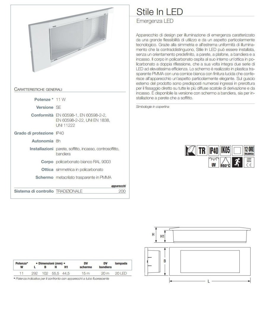 Grâce à la symétrie et à l'extrême uniformité d'éclairage qui la caractérisent, le style LED peut être installé sans orientation prédéfinie, au mur, au plafond, au drapeau et à encastrer. Méthode de montage : montage mural et encastré (boîte incluse). BEGHELLI LAMPE à ÉCONOMIE d'ÉNERGIE IMMÉDIATEMENT à DOUBLE 25W E27 4000K Lampe de secours LED 1499E 11w avec batterie au lithium, caractérisée par une très grande autonomie (8h) ; Lentille innovante qui augmente les performances d'éclairage en permettant d'étendre les distances entre les luminaires et l'uniformité de l'éclairage du pictogramme ; La conception optique offre des caractéristiques antireflet spéciales et une excellente diffusion de la lumière... La version du drapeau est disponible pour une installation au mur ou au plafond. 2 Beghelli Lampe D'urgence 11 W LED 8 Heures D'autonomie IP40 SE BEG 1499 Le corps en polycarbonate abrite à l'intérieur une optique en polycarbonate à double réflexion, qui intègre à son tour deux séries de LED très efficaces. Sur la coque extérieure du produit, de nombreuses entrées prédécoupées pour la fixation directe sur toutes les boîtes de dérivation et à encastrer. L'écran est fabriqué en plastique PMMA transparent avec un cadre blanc brillant qui donne à l'appareil un aspect particulièrement élégant. Beghelli 1499 est un luminaire de secours design caractérisé par une grande flexibilité d'utilisation et un aspect particulièrement technologique. Grâce à la...