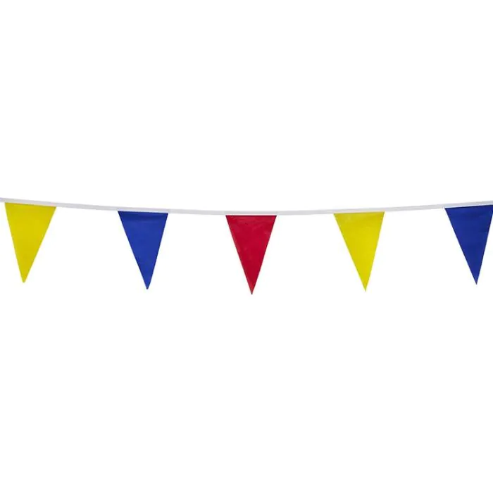 Guirlande tissu Circus (jaune, bleu, rouge) 20 fanions - 30 x 20 cm Guirlande de fanions personnalisée en tissu, décorative, durable et 100 % personnalisable. Longueurs disponibles : 5 m, 10 m, 15 m ou 20 m selon vos besoins. 20 fanions / 5 m : montés sur une sangle polyester résistante. Tissu 115 g/m² : léger, souple et durable. Impression HD : sublimation jusqu’à 1440 dpi (CMJN). Effet miroir : visuel visible à 95 % au verso. Ignifugé M1/B1... Guirlande Fanion Triangle Guirlande Fanion 15x22 Guirlande De Fanion, Impression En Ligne Rapide Et De Qualitu00e9 | Flyer.be Guirlandes Fanions Avec Drapeaux Guirlande Fanions Imprimés matière : plastique, longueur : 5 mètres, Guirlande composée de 10 fanions triangulaires (dimensions fanion : 20 x 30cm). Disponible dans de nombreux coloris (argent, or, rouge, vert anis, bleu moyen, noir, blanc, rose, vert clair, vert anis, orange, violet). A vous de jouer pour décorer dans un esprit kermesse guinguette dans votre couleur préférée. En stock Date de disponibilité... Guirlande blanche en plastique ultra résistant de 5 mètres, guirlande décoration mariage, décoration baptême, décoration extérieur tour de France