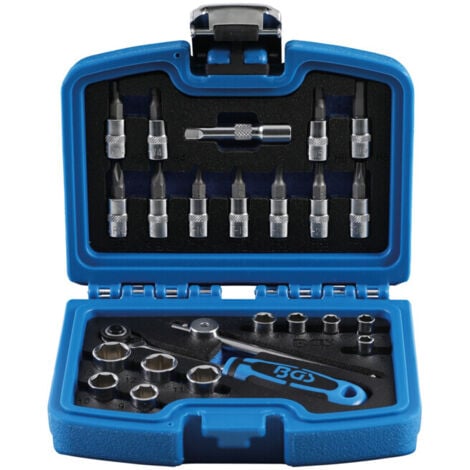 7 douilles, profil E (pour Torx) E4 - E5 - E6 - E7 - E8 - E10 - E11 Douilles en version hexagonale Pro Torque, chromées polies cliquets réversibles « extra slim » à denture fine, 72 dents, avec dégagement rapide des douilles, modèle droit en coffret système BGS avec insert en mousse EPE Empreinte carré femelle 6,3 mm (1/4) 1 poignée coulissante avec adaptateur, 2 rallonges, 50 et 100 mm, 1 articulation de cardan En acier au chrome-vanadium et chrome-vanadium (S2) 1 poignée rotative, 150 mm BGS Gear Lock Steckschlüssel Einsätze 6,3 (1/4) 13 teilig 2150 3 douilles à embout, plat 4 - 5,5 - 6,5 mm 3 clés coudées, hexagone femelle 1,5 - 2,0 - 2,5 mm, longueur 45,5 - 52 mm 6 douilles profondes, 8 -10 - 11 - 12 - 13 - 14 mm 6'3 In Cm Jeu De Douilles 6,3 Mm (1/4") 24 Pièces BGS Coffret Douille Torx Femelle Coffret de douilles six pans et accessoires BGS TECHNIC - 6,3 mm / 10 mm / 12,5 mm - 192 pcs... 6 douilles à embout, profil T (pour Torx) T10 - T15 - T20 - T25 - T30 - T40 13 douilles, 4 - 4,5 - 5 - 5,5 - 6 - 7 - 8 - 9 - 10 - 11 - 12 - 13 - 14 mm
