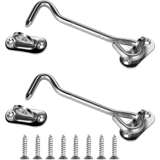 YAYODS Lot de 6 crochets tempête avec œillet – 30 cm en acier inoxydable pour portes, fenêtres et portails Couleur : argenté. Les crochets de porte disposent d'un crochet plus courbé qui rend vos portes et fenêtres plus sûres et plus stables. Taille de chaque crochet : 30 cm de longueur. Contenu : le paquet contient 6 crochets de cabine de 30 cm, chaque crochet est équipé de 1 loquet perforé et de 4 vis. Facile à installer : il vous suffit de percer les vis dans les trous et d'installer les crochets tempête avec œillet pour terminer les travaux d'installation. Emballage complet Une extrémité a un design de serrure facile à ouvrir, qui est très flexible et pratique à déverrouiller. Matériau : acier inoxydable. Dimensions : 100 mm... Attache Volet CHUIFAI Lot De 6 Crochet De Fermeture Porte En Acier Inoxydable, Loquet Porte, Avec œillet De 10 Cm, Pour Abri De Jardin, Fenêtre Butee De Portail Matériau : acier inoxydable. Crochets Patere Mural Inox Ronds Argent - Lot de 6 - Support Mural en Large application : le crochet avec œillet est parfait pour verrouiller les stores, les clôtures en bois, les portes ouvertes de hangar, les portes de jardin, les portes battantes en bois, les portes de grange et plus encore. Utilisation : idéal pour les portes, fenêtres, portails, clôtures, portes battantes en bois. Engagement de qualité : nous nous engageons à fournir des produits de haute qualité, si vous avez des questions sur nos crochets tempête en acier inoxydable, n'hésitez pas à nous contacter, nous vous répondrons dans les 24 heures.