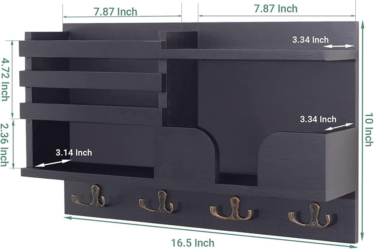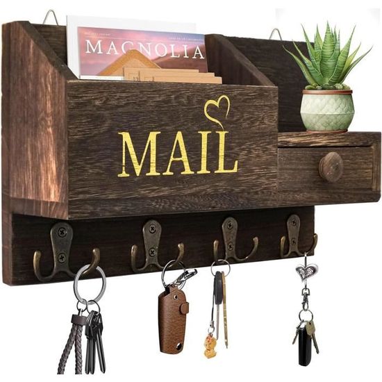 Mémoire multifonctionnelle : Le porte-clés MaxEarn en bois est fabriqué en bois massif naturel et est grillé avec du charbon de bois, une surface laquée pour éviter la rouille et la corrosion, le panneau à clés est composé d'une boîte postale, d'une étagère de rangement de tiroir et de 4 crochets doubles en acier inoxydable. Le porte-clé mural MaxEarn est parfait pour les entrées intérieures, les couloirs, les salons, les salles de bains, les cuisines, les buanderies, les garages et les bureaux. Porte-Clés Mural, Étagère Flottante En Bois Avec 4 Crochets, Étagère De... Décoration exquise : le panneau à clés avec son design exquis, simple et élégant, qui s'intègre dans une variété de styles de maison laisse une atmosphère chaleureuse dans votre maison pour ajouter une touche naturelle à votre maison, et les crochets à clés peuvent répondre à toutes sortes de besoins de stockage, est idéal pour les couloirs, le bureau, le salon ou la chambre à coucher, et pour une belle décoration murale. Spécifications: Matériau : bois massif + métal., Couleur : blanc. ② 4 crochets doubles en acier inoxydable : 4 grands crochets doubles pour accrocher des clés de maison, des chapeaux, des parapluies et d'autres objets. ④L'étagère de plan de travail est adaptée pour placer de jolies petites plantes vertes. Pratique : le panneau à clés d'une boîte postale, peut stocker des lettres et d'autres documents, un tiroir de rangement pour timbres, bagues, cartes et autres petits objets, 4 crochets à clés doubles en acier inoxydable, pour accrocher des clés de maison, des chapeaux, des parapluies et d'autres objets, et l'étagère de plan de travail est adaptée pour placer de jolies petites plantes vertes. ③ Petit tiroir : le tiroir peut contenir des timbres, des bagues, des cartes et d'autres petits objets et la poignée ronde permet d'ouvrir et de fermer facilement le tiroir. Stockage multifonction : le porte-clés en bois MaxEarn est composé à 100 % de bois massif naturel, a une bonne stabilité, et est rôti au charbon de bois, sans goût piquant d'odeur chimique et avec un faible parfum de bois, peut contenir votre courrier, factures, clés, parapluie, manteau, portefeuille, laisse pour chien, lunettes de soleil, etc. Porte Cle Mural Porte-clés Mural Noir Avec 4 Crochets Et Range Porte Clé Murale Intérieure Range Clés Mural Décoration Jemyxhw Porte-Clés Mural Bois 3 Crochets Doubles - Organisation Entrée, Couloir - Style Vintage - Blanc Rangement Entrée Crochets Etagere Mural Blanc Laque Étagère à clés polyvalente : l'étagère murale MaxEarn en bois peut être utilisée pour présenter des plantes, des objets de collection ou d'autres accessoires de maison et accrocher facilement des manteaux, des sacs, des parapluies, des clés et des ceintures.