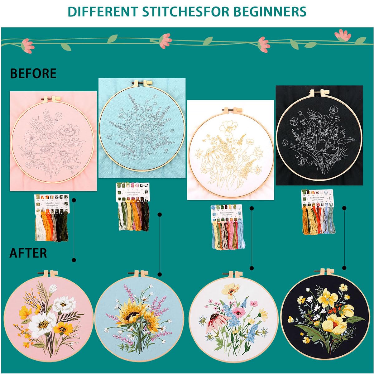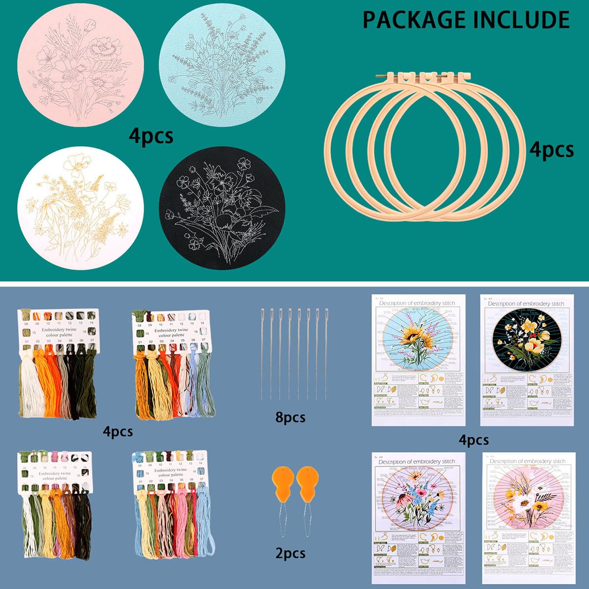 Kit de broderie de fleurs pour débutants - Aiguilles à broder Avec ce kit, vous pouvez commencer à profiter de ce kit de broderie Les motifs sont faits d'une encre spéciale qui disparaît au contact de l'eau. Faites-en une décoration unique Kit De Broderie - 4 Ensembles De Broderie Pour Débutants Avec Motif De Fleur Estampée, Kits De Suivez les instructions détaillées dans l'emballage pour rendre la broderie facile pour tout le monde, des débutants aux brodeurs avancés Une fois le kit de broderie pour débutants terminé, vous pouvez le suspendre dans votre chambre à coucher, votre salle à manger ou votre salon en guise de décoration, ou même le broder sur des serviettes, des taies d'oreiller ou des sacs à dos. Décoration Intérieure Élégante: Nos magnifiques kits de broderie suspendus contiennent différents motifs floraux réalistes. Des Points Amusants à Apprendre: Vous pouvez apprendre plus de 30 points différents en suivant les instructions détaillées, pratiquer la broderie de points faciles à difficiles, acquérir des compétences en broderie, expérimenter et apprécier le plaisir de la broderie. Lorsque vous avez terminé, vous pouvez laver le motif Il s'agit d'un véritable chef-d'oeuvre de couture avec des instructions créées par des experts pour garantir que ce kit convient à tous les niveaux d'expertise... Kit de Broderie pour Débutants: Le kit de broderie contient 4 types de motifs de broderie différents et chaque tissu de broderie est imprimé avec un motif coloré, ce qui est très utile pour les débutants.