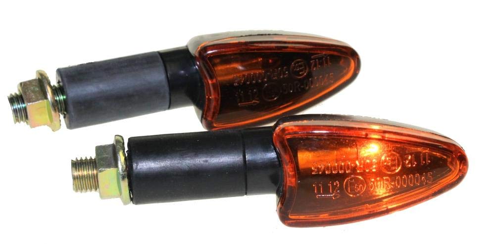 Avec ces clignotants, faites signe. Longueur de la tige (avec filetage) : 32 mm. Caractéristiques techniques : Kit Mini clignotants moto de type « Leo », version courte., 12 V / 1 W., 15 LED par clignotant. La technologie LED pour les clignotants est de plus en plus utilisée par les motards. Grâce à leur look discret et épuré, les mini clignotants puissants s’adaptent parfaitement à votre moto sans dénaturer cette dernière Données techniques Jeu de mini clignotants moto Leo, version courte 12V / 1W par clignotant 15 voyants par clignotant adapté pour moto, scooter, scooter avec filetage ou adaptateur correspondant Taille de filetage: M10 longueur tige (sans fil): 17mm longueur tige (avec filetage): 32mm dimensions tête (Lx Bmax): 51x 29mm couleur boîtier... Mini Clignotants Moto LED Lynx Carbone Séchés E Certifié Pour Cpi Mini Clignotant Led Moto Mini-clignotants haut de gamme (avec label E) de Citomerx pour votre moto, vélomoteur ou vos rollers. Mini clignotant LED pour moto avec feu de position, feu de Dimensions tête (longueur x largeur max., ) : 51 x 29 mm. Taille de filetage : M10., Longueur de la tige (sans filetage) : 17 mm. Taille de filetage : M10., Câble E certifié, connexion : 2., Pour Honda, Kawasaki, Suzuki, Yamaha.