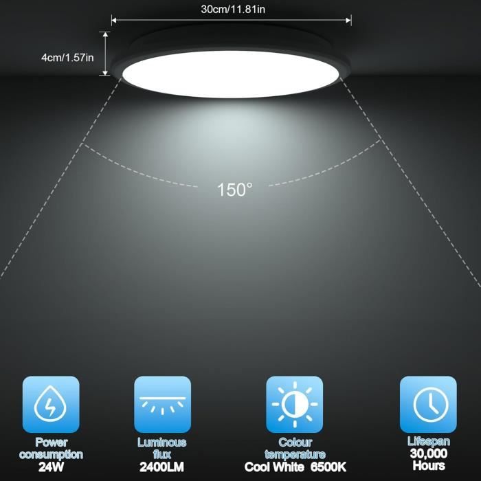 【Économie d'Énergie】 Ces plafonniers LED ronds de 24W génèrent une luminosité puissante jusqu'à 2400 lumens, se substituant avantageusement aux ampoules incandescentes de 200W. La lumière uniforme et sans scintillement de nos plafonniers LED crée un environnement favorable pour les yeux, afin de protéger votre vue. Philips Hue LUTW Plafonnier LED, 24W 2400LM Luminaire Plafonnier LED, 6500K Blanc Froid, IP44 Plafonnier Salle De Bain Rond, Pour Salon, Toilette, Garage, Cuisine, Chambre, Couloir, 28cm Plafonnier Led Salle De Bain Rendu des Couleurs Élevé (CRI 80) Non dimmable, veuillez ne pas l’utiliser dans un gradateur et une douille de gradation, car cela pourrait provoquer un scintillement ou réduire la durée de vie de l’ampoule. GOECO Plafonnier LED Moderne Rond, Blanc, 24W , 30cm, 2400LM Ce plafonnier à led atteint 2400 lumens en blanc froid 6500K, assure un rendu des couleurs clair et restaure la vraie couleur de la vie. Économie d'Énergie] Ces plafonniers LED ronds de 24W génèrent une luminosité puissante jusqu'à 2400 lumens, se substituant avantageusement aux ampoules incandescentes de 200W. Réduisez votre facture électrique jusqu'à plus de 85% tout en profitant d'une longévité remarquable jusqu'à 30 000 heures. [Économie d'Énergie] Ces plafonniers LED ronds de 24W génè... Avec un indice de rendu des couleurs élevé (CRI > 80), il reproduit des couleurs vives et naturelles. 【Garantie de 2 Ans】 Garantie de 2 ans, offrant un service de remplacement ou de remboursement à 100% pour tout problème de qualité. 1 Salon 2 Chambre à coucher 3 Cusine 4 Salle de bain 5 Couloir LQWELL® Plafonnier LED, Lampe de Salle de Bain Étanche IP44 Ronde Plate 18W 6000K 1980LM Lampe Simple Moderne Mince pour Salon Chambre Cuisine Balcon... LUTW Plafonnier LED, 24W 2400LM Luminaire Plafonniers LED, 6500K Blanc Froid, IP44 Plafonniers Salle de Bain Rond, pour Salon, Toilette, Garage 【Protection des Yeux】 Notre plafonnier LED offre une transmittance lumineuse supérieure, diffusant une lumière uniforme et douce dans toute la pièce, sans éblouissement ni scintillement, garantissant ainsi le confort des yeux. IP54 et conception étanche La cote d'étanchéité de ce plafonnier LED est IP54., Sa conception hermétique empêche efficacement les insectes, la poussière et les éclaboussures d'eau de pénétrer dans le produit, garantissant ainsi le bon fonctionnement de la lampe.