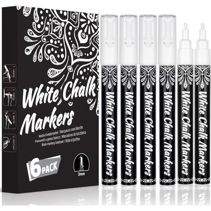 Feutres de fenêtre lavables : notre kit de craie est disponible en 12 couleurs différentes, y compris violet, kaki, rose, blanc, rouge, jaune, vert... Les marqueurs à craie peuvent être utilisés uniformément sur une variété de surfaces lisses telles que les tableaux noirs, les tableaux blancs, les fenêtres, le verre, le papier de contact, le métal, le plastique, le carrelage, etc. Que vous souhaitiez dessiner en détail ou remplir de grandes surfaces, vous trouverez la bonne taille dans ce kit de craie liquide pour une utilisation flexible et d'excellents résultats créatifs. Stylo Tableau Blanc Effacable Marqueurs Craie Lavable HENGBIRD - Lot De 8 Couleurs - Pointe 10mm - Pour Verre, Tableau, Miroir Marqueur Craie Effacable Tableau A Craie Enfant Lot De 12 Marqueurs à Craie Pour Tableau Blanc - Lavables - Couleur Marqueur Craie Fenetre Vous pouvez l'utiliser pour des projets tels que la peinture de fenêtre, les panneaux de mariage, les façades de magasin, les tableaux de jalon, les cartes de restaurant, les tableaux de bistro, les tableaux LED, le papier de contact, les miroirs, les vitres de voiture et bien plus encore. Grâce à l'utilisation de pointes en fibre, il est robuste et durable, même en cas d'utilisation fréquente, il n'y a pas de fissures, de poils collants et d'usure, et il conserve toujours un effet d'écriture lisse. Durable et durable : nos marqueurs à craie ont un design humanisé, sont résistants aux gouttes et à l'éclatement, très sûrs et faciles à transporter. Vous pouvez simplement l'essuyer avec un chiffon humide ou un chiffon pour garder la surface propre. Craie liquide effaçable : ces marqueurs à craie liquide sont fabriqués avec une encre à base d'eau qui est sans poussière, non toxique et sans odeur, et est plus facile à effacer que les craies traditionnelles. Facile à nettoyer : marqueur effaçable avec encre non toxique à base d'eau qui peut être effacée sur des surfaces non poreuses telles que les miroirs, le verre... Pointe commutable de 6 mm : chaque marqueur à craie liquide est livré avec une pointe ogive réversible de 6 mm avec pointe biseautée.