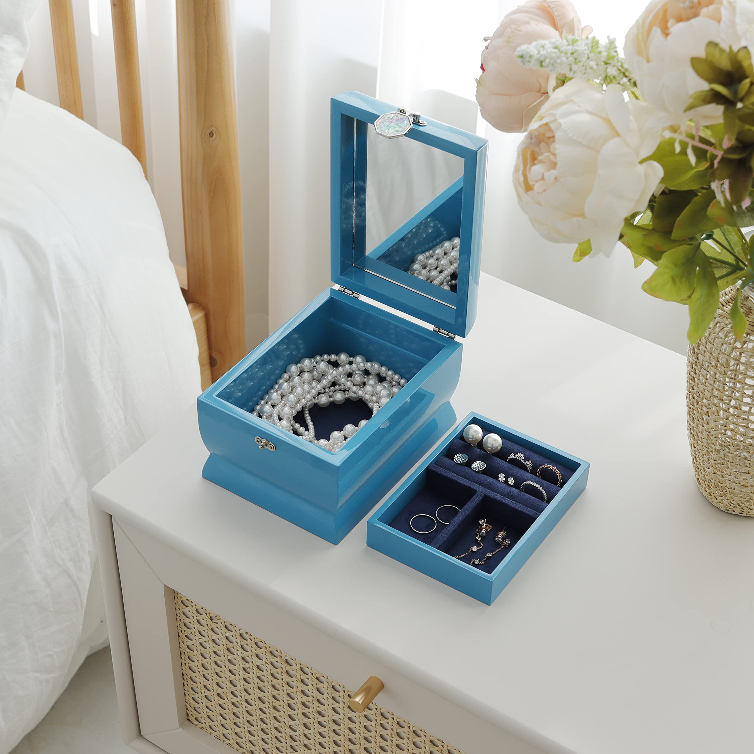 Parce que les cristaux se forment naturellement, chaque incrustation a un aspect légèrement unique reflétant la lumière. Miroir de courtoisie avec finition laquée brillante à l’intérieur du couvercle et fermoir décoratif en forme de tortue Motif grues de couleur bleue pour la décoration de la maison livré dans un coffret cadeau prêt à offrir Comment est-il fabriqué ? Les coquillages sont incrustés dans un motif sur la boîte. Boite A Bijoux Bleu Boîte à Bijoux Pearl - Boîte Multi Rangements - Print-in-place By Ma Jolie Boîte à Bijoux Hanji est l'utilisation du papier de mûrier pour l'art. Boîte à bijoux fabriquée à la main avec plateau amovible à deux niveaux avec miroir. Incrustation en nacre ? Cette boîte à bijoux a été fabriquée à la main en utilisant des techniques traditionnelles d'incrustation de nacre, de Hanji et de laque. Motif sirène et papillons de couleur noire. Miroir à l'intérieur du couvercle Finition laquée brillante protectrice Le résultat est un article réfléchissant avec une finition brillante. Boite à bijoux fille Trousselier vanity Sirène musicale Une boîte à bijoux est un cadeau idéal pour Noël, la Saint-Valentin et les anniversaires., Offrez aujourd'hui. Motif sirène de couleur noire Boite a Bijoux, Homever Rangement Bijoux avec Miroir et Tiroirs... Dimensions : 16 cm x 12 cm x 10 cm., Poids : 500 g. Livré dans un coffret cadeau, prêt à offrir. Boîte à bijoux coréenne fabriquée à la main Livré dans un coffret cadeau prêt à offrir