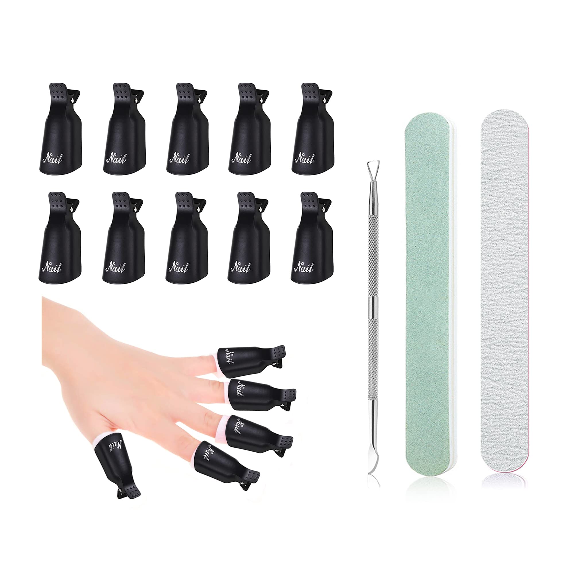 Description du produit Spécification : Matériel : Plastique, acier inoxydable couleur : Noir Taille des clips à ongles : 5., 1x2., 1x2., 1cm/ 2x0., 83x0., 83inch Longueur du pousse cuticule : 13., 6cm/ 5., 35inch Taille de la lime à ongles : 17., 8x2x0., 4cm/ 7x0., 79x0., 16inch Taille de la lime à polir : 17., 7x1., 9x0., 8cm/ 7x0., 75x0., 3inch Le paquet contient : 10 x clips de dissolvant pour vernis à ongles 1 x pousse cuticule 1 x lime à ongles 1 x lime à polir Conseils chauds : - Le clip de dissolvant a la bonne taille pour maintenir vos doigts et le tampon d'ouate fermement en place. - Si le nombre de clips de dissolvant à ongles n'est pas suffisant ou si vous n'êtes pas satisfait de votre achat, veuillez nous contacter. Mode d'emploi 1) Poussez la cuticule avec le pousse cuticule ; 2) Placez un coton sur l'ongle ; 3) Attachez le clip sur l'ongle pour maintenir le coton en place ; 4) Attendez que le vernis à ongles se dissolve ; 5) Retirez le clip et le coton ; 6) Hydratez les ongles et les mains. L'outil pour enlever ongles ensemble est facile à utiliser, et bouchons en plastique avec des tampons en coton pour ongles sont très agréables à porter et ne blesseront pas votre ongle Pince à cuticules pour pieds et ongles, coupe ongles, coupe en France... Accessoire Vernis Semi Permanent Cityimart - Pinces à Ongles, 10 Pièces/paquet, Clips, Dissolvant, Pour Kit Depose Vernis Semi Permanent Kit dissolvant pour vernis à ongles 10 pinces doigts+2 limes
