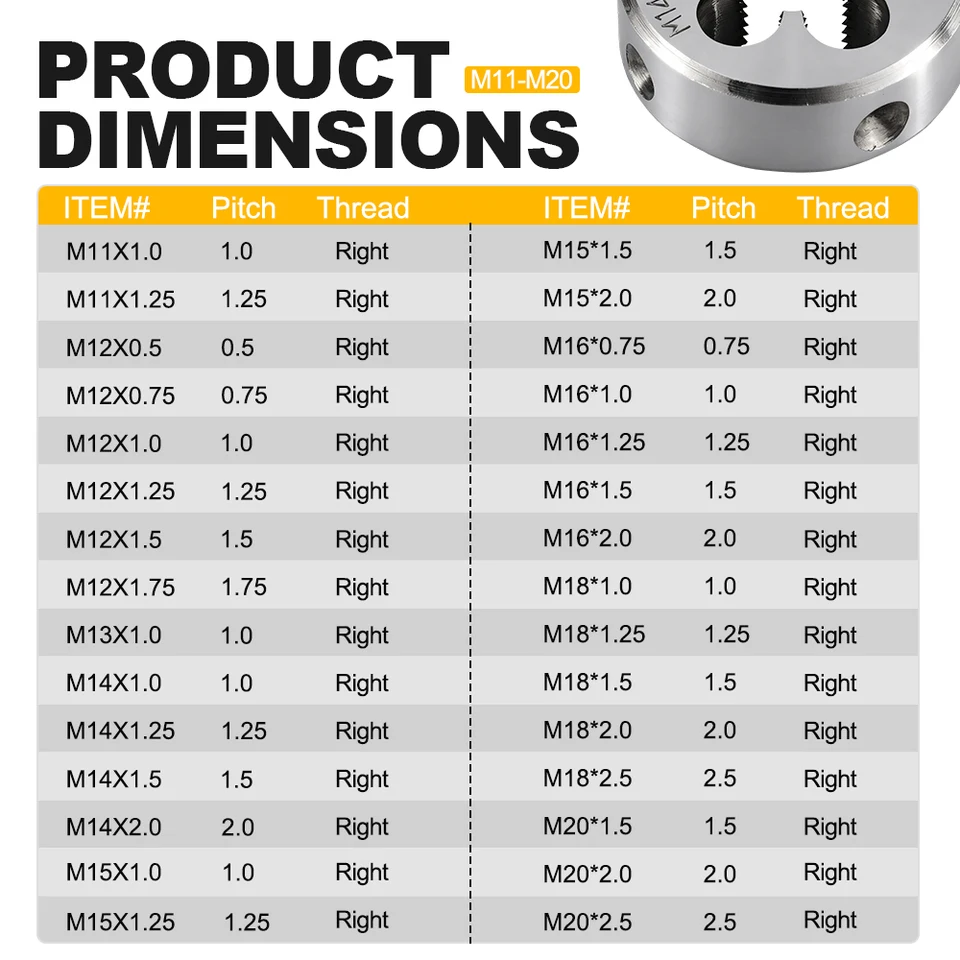 Trou de verrouillage conique solide, trou de retrait des copeaux de grande capacité, retrait lisse des copeaux., Conseils : 1., Veuillez vous assurer de prendre des mesures de protection lorsque vous travaillez, vous devez porter des lunettes et des gants de protection., 2., Avant de taper, vérifiez si le diamètre de la matrice est approprié. Technologie : design cannelé droit, retrait rapide des copeaux et aucun blocage pour un usinage plus rapide et plus facile. Applications Matériau : alliage d'acier, diamètre de coupe : 14 mm, pas : 1,5 mm, direction de coupe : main droite, classe de précision : 6 g. Filière M14 Kit Réparation Filetages M14 X 1,25. Tarauds HSS Et Inserts Pour Filière M14 Pas Cher Conseils : une huile lubrifiante appropriée doit être ajoutée au bord tranchant de la matrice pendant le travail pour prolonger la durée de vie de la matrice. Matériau de la matrice : alliage d'acier, diamètre de coupe : 24 mm, pas : 1,5 mm, direction de coupe : main droite, classe de précision Vis Métrique - Tête Hexagonale - Filetage Total DIN-933 - Zingué M14 X 45 Boite De 50 86447713 Matériau : fabriqué en alliage d'acier, haute dureté, forte résistance à l'usure et longue durée de vie. Assurez-vous de sélectionner l'huile de coupe appropriée pour le processus de taraudage complexe et d'appliquer de l'huile antirouille pour l'entretien après utilisation., 3., Il doit être inversé tous les 1/4 ~ 1/2 cercle pour faciliter la décharge de la puce du trou de copeaux.