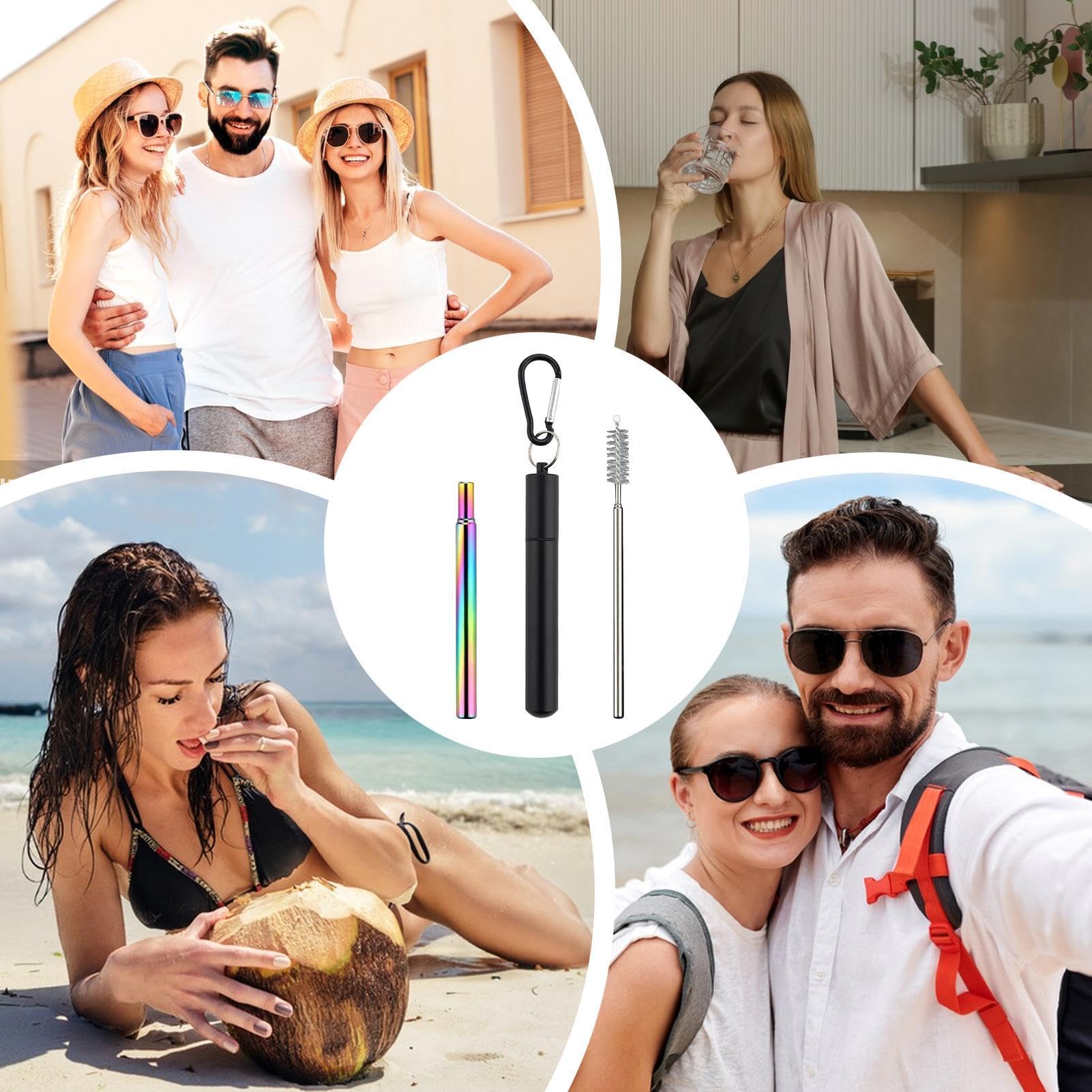 Design pliable : la paille pliable en métal et la brosse de nettoyage adoptent un design rétractable, et sont équipées d'une boîte de rangement et d'un mousqueton. Pailles pliables, réutilisables et respectueuses de l Réutilisables : ces pailles télescopiques réutilisables peuvent remplacer les pailles en plastique ou en papier utilisées quotidiennement, réduisant la pollution environnementale et la pollution marine. Paille Acier Inoxydable Pailles Réutilisables, Pliables En Acier Inoxydable Avec Brosse Paille Inox Passe au lave-vaisselle, réutilisable et respectueux de l'environnement. Fabriquée en acier inoxydable de qualité alimentaire, elle est durable et résistante à la rouille. Une brosse de nettoyage est fournie pour un nettoyage facile... Large application : peut être largement utilisé dans de nombreuses occasions dans la vie, les réunions de famille, les fêtes, les restaurants, les bars, les pique-niques, les réceptions, etc. Avec la brosse de nettoyage télescopique, vous pouvez facilement nettoyer la paille, toujours garder la paille propre. Matériaux de haute qualité : la surface du lot de pailles métalliques est bien polie, et très lisse pour ajuster la longueur de la paille réutilisable.