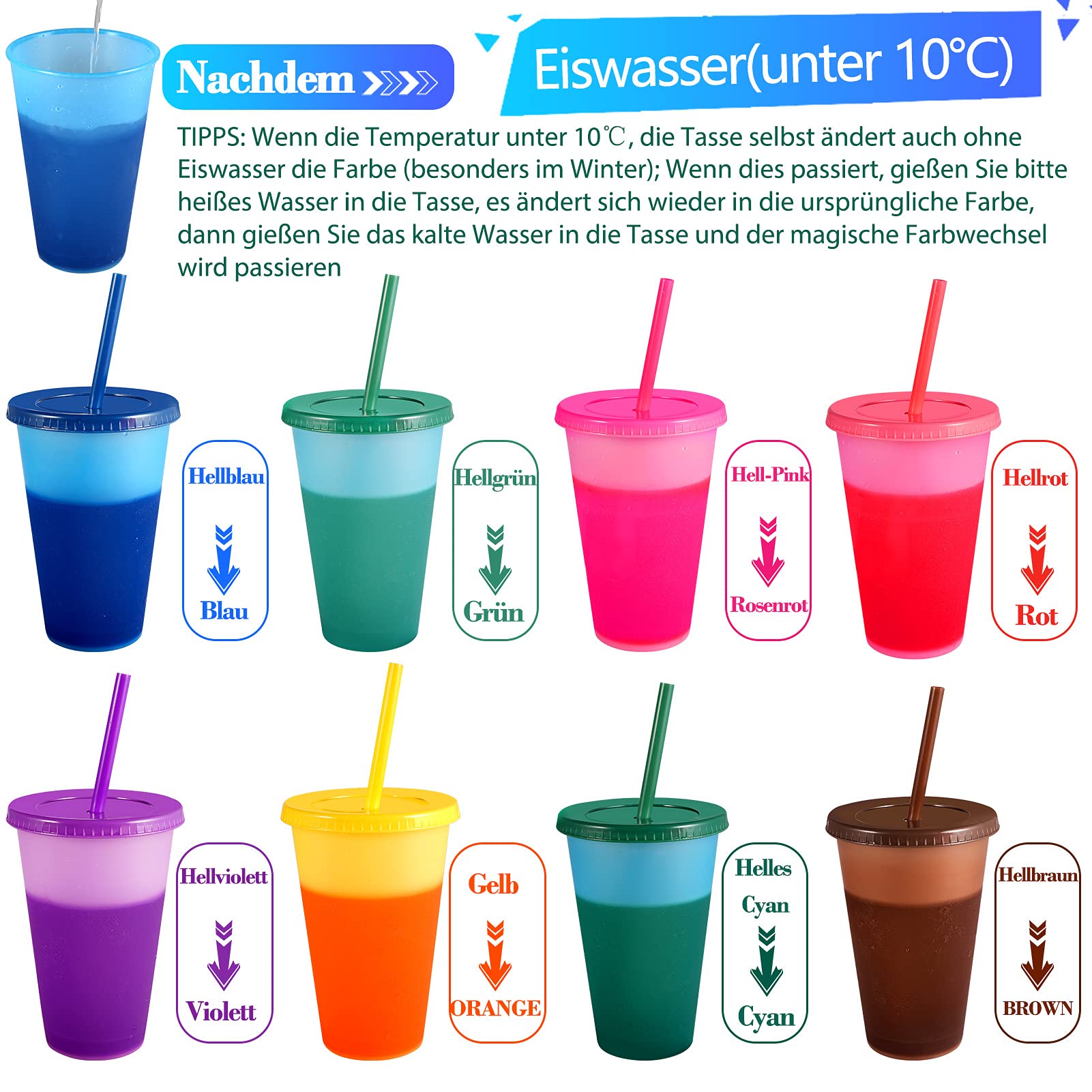 La paille avec un anneau circulaire l'empêche de tomber du couvercle et de causer des pertes FACILE À NETTOYER AVEC DES BROSSES - 5 gobelets à changement de couleur correspondent à 5 couvercles et 5 pailles. Chaque jour est un jour de la terre, soyez respectueux de l'environnement avec notre tasse à café glacée lavable et réutilisable 40oz Gobelet de voyage Tasse à café à paroi double isolée sous vide acier inoxydable avec paille... Gobelet Smoothie YushengTai 10pcs Tasse à Boissons Froides Avec Paille & Couvercle,Tasse Gobelet Avec Paille Veuillez appuyer sur le couvercle sur le dessus de la tasse avec un peu de force jusqu'à ce que vous entendiez un clic, puis faites pivoter un peu le couvercle, les couvercles anti-éclaboussures réduiront les déversements. À ce moment, si vous ajoutez de l'eau chaude à la tasse, la tasse prendra sa couleur d'origine. EASEVE Lot de 12 gobelets en plastique réutilisables de 710 ml à changement de couleur avec couvercles et pailles – Gobelets réutilisables pour café glacé, eau froide, fête pour enfants, adultes Des astuces: En été, le changement de couleur dépend de l'eau glacée, plus la température est basse, plus la couleur est brillante. ON THE GO & STACKABLE - Nos gobelets à changement de couleur avec la forme ON THE GO, les gobelets pour boissons froides en vrac de 24 oz / 710 ml sont confortables à tenir. Venez avec 2 brosses de nettoyage de paille et 1 brosse éponge, aidez à laver les tasses et les pailles à l'aise et nettoyez soigneusement. Gobelets à couleurs changeantes avec couvercle et paille - 5 pièces - 710 ml - gobelets en plastique réutilisables - smoothie - café - milkshake - adultes... Pourquoi obtenez-vous : 5 tasses à changement de couleur 5 couvercles 5 pailles 2 x brosse de nettoyage de paille 1 x brosse éponge Les bouteilles en plastique conviennent aux piscines, aux plages, aux pique-niques et aux voyages, parfaites comme articles de f te et gobelets pour enfants, TASSE FROIDE AVEC PAILLE ET COUVERCLE - Cette tasse de f te amusante et pratique avec des couvercles pression peut s'adapter en toute s curit chaque tasse caf glac . La paille avec un anneau circulaire l'emp che de tomber du couvercle et de causer des pertes, FACILE NETTOYER AVEC DES BROSSES - 9 gobelets changement de couleur correspondent 9 couvercles et 9 pailles. MATÉRIAU SÛR ET ÉCOLOGIQUE - La tasse froide avec paille et couvercle est fabriquée à partir de matériau PP de qualité alimentaire de haute qualité, sans BPA et durable. Si vous avez des questions sur nos gobelets pour boissons froides, veuillez nous contacter. Vous emmener dans un pays des merveilles coloré Caractéristiques: Capacité : 24 onces Matériaux : polypropylène Dimensions : env. Les bouteilles en plastique conviennent aux piscines, aux plages, aux pique-niques et aux voyages, parfaites comme articles de fête et gobelets pour enfants