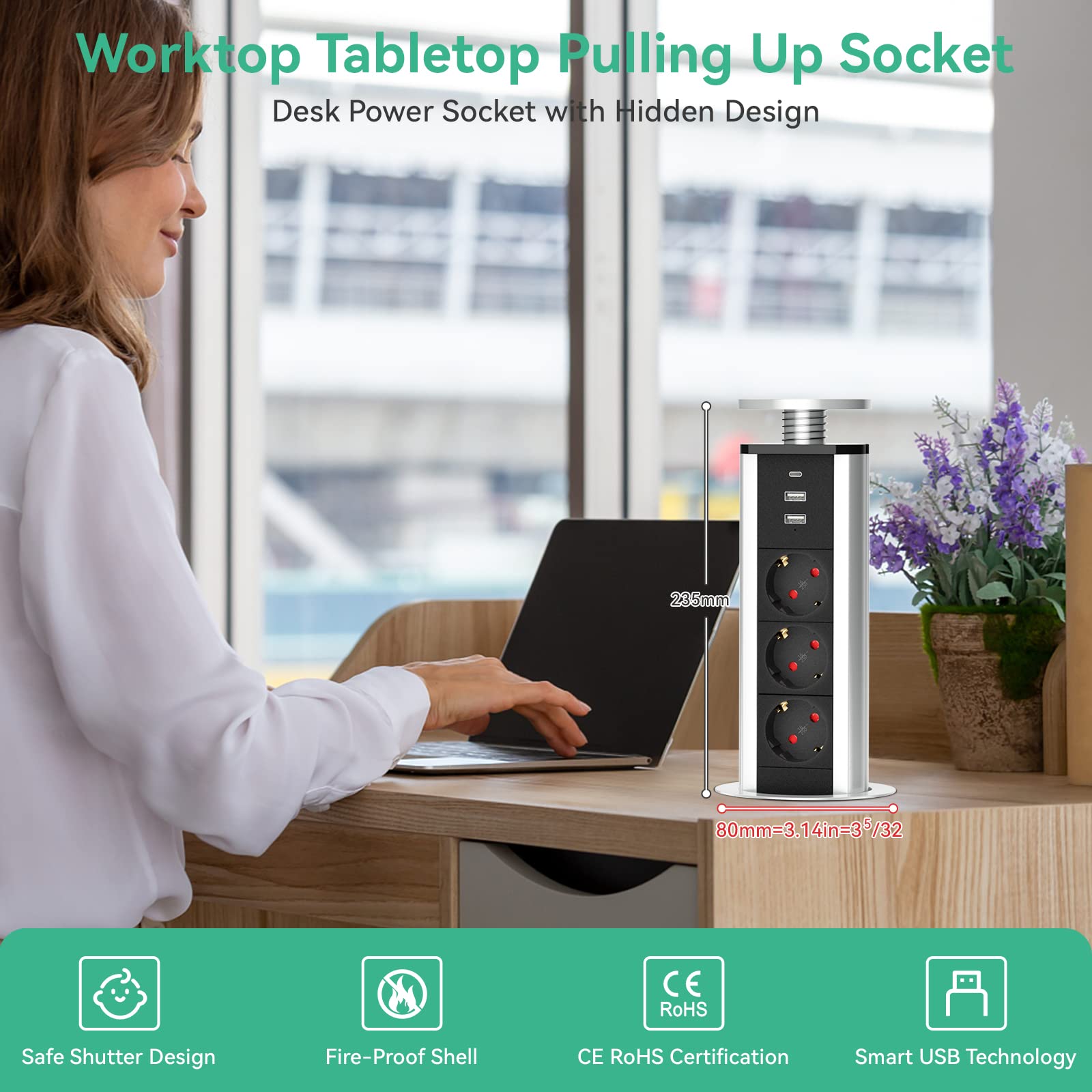 Prise de bureau peu encombrante: Bloc d'alimentation rétractable à 3 voies disposé à un angle de 45° et prises intégrées, économisez de l'espace et rangez votre bureau. Prise Usb C Prise Encastrable Plan De Travail, Bloc Multiprise Escamotable 3 Reglette Led Cuisine Lorsqu'elle n'est pas utilisée, la prise se rétracte facilement pour offrir une surface parfaitement plane et épurée. Cette prise de table encastrable offre une alimentation optimale dans un espace minimal, idéale pour charger téléphones, tablettes, ordinateurs et autres appareils. Pour la cuisine, un bureau ou un atelier, ce grand classique séduit d'emblée par sa facilité d'utilisation. Vous pouvez vous en servir exactement comme une multiprise normale, mais sans contrainte de câblage Notre produit comprend une garantie de 12 mois. Idéal pour la cuisine, le salon et le bureau. ultiprise Encastrable 3 Prises avec 2 USB C PD20W, Bloc Prise... 2 USB C PD 20W: Bloc prise escamotable est en plastique PC ignifuge. Bloc prise encastrable plan de travail Prise Encastrable mit USB C PD 20W pour Plan de Travail Spécifications des ports : Port USB-C : PD 3., 0 (20W max) – 5V/3A, 9V/2., 22A, 12V/1., 67A Port USB-A : QC 3., 0 (18W max) – 5V/3A, 9V/2A, 12V/1., 5A Charge simultanée : Les ports USB-A et USB-C peuvent être utilisés en même temps, mais la puissance totale est limitée à 15W partagés (débit intelligent). Multiprise plan de travail au meilleur prix | Leroy Merlin Prise Encastrable Plan de Travail Gagnez de l'espace sur votre plan de travail ! Prise intégrée innovante: Prise de bureau pour une conception d'espace de travail flexible - Peut être masquée lorsqu'elle n'est pas utilisée, n'affecte pas l'utilisation du bureau. Le port USB-A fournit QC18W, et le port USB-C fournit PD20W, 5V/3A, 9V/2,22A, 12V/1,67A. Installation facile: Percez un trou de 60 mm de diamètre dans la table et placez-y la multiprise. Facile à installer et à utiliser.